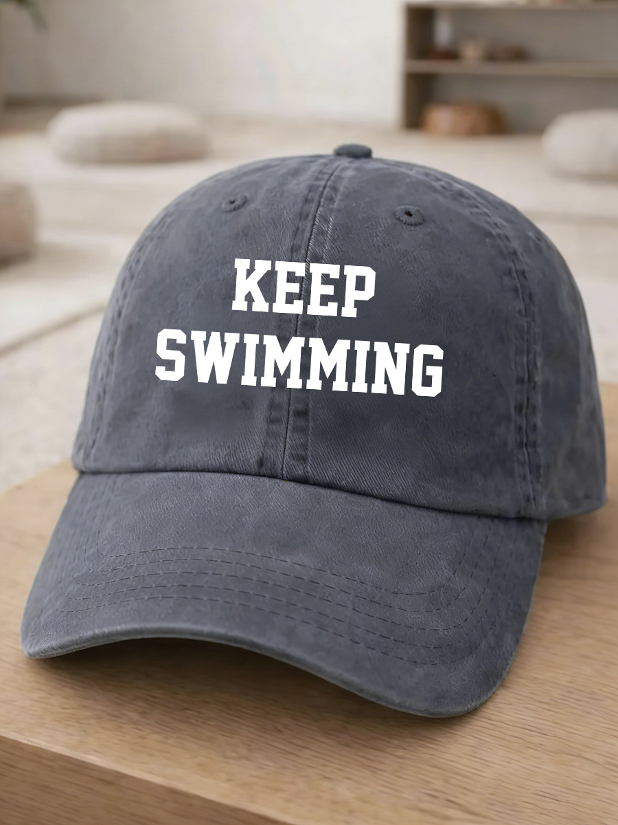 Vintage Inspirational “Keep Swimming” Quote Washed Cotton Baseball Cap