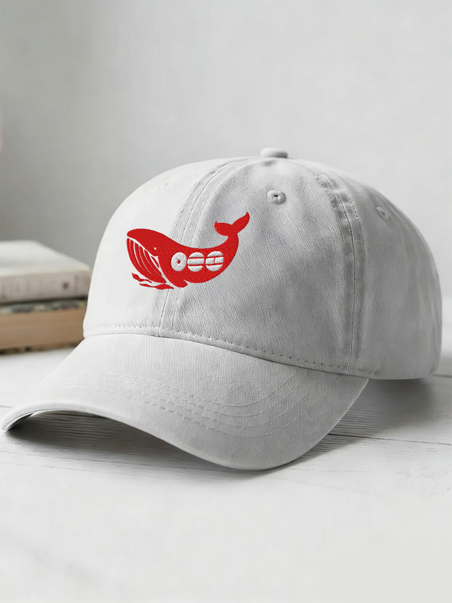 Unisex Red Letter-in-Circle Graphic within Stylized Whale Motif Baseball Cap