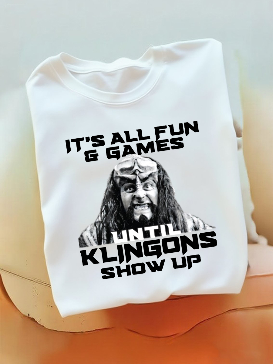 Men's "It's All Fun And Games" Sci-Fi Creature Quote Letter Graphic Print T-Shirt