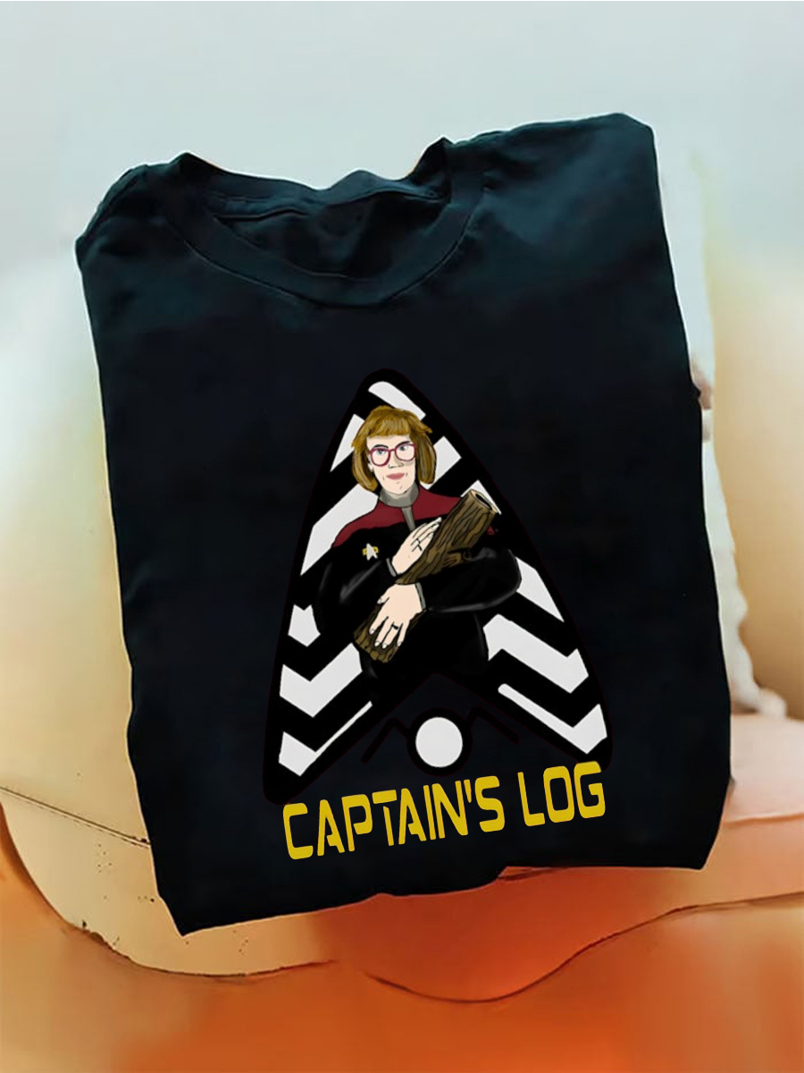 Men's Captain's Log Cartoon Figure Triangle Badge Letter Graphic Print T-Shirt