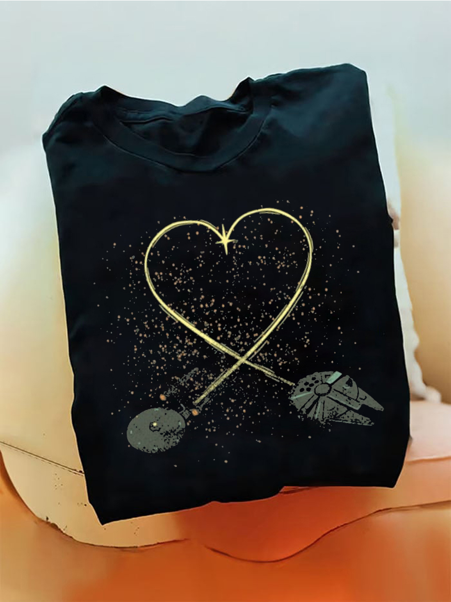 Men's Spaceships Heart-Shaped Trajectory Print T-Shirt