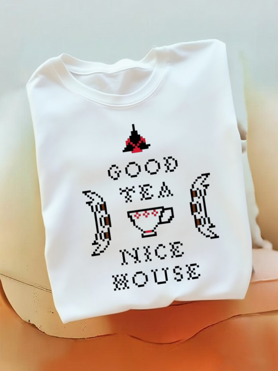 Men's Vintage Game Pixel Art "Good Tea Nice House" Letter Print T-Shirt