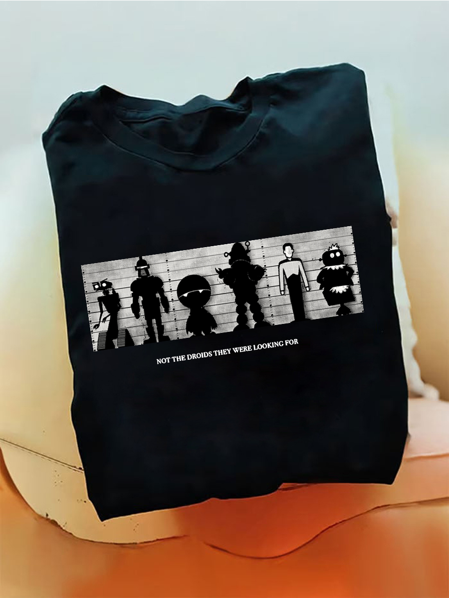 Men's "Not The Droids They Were Looking For" Robot Silhouette Lineup Graphic Print T-Shirt