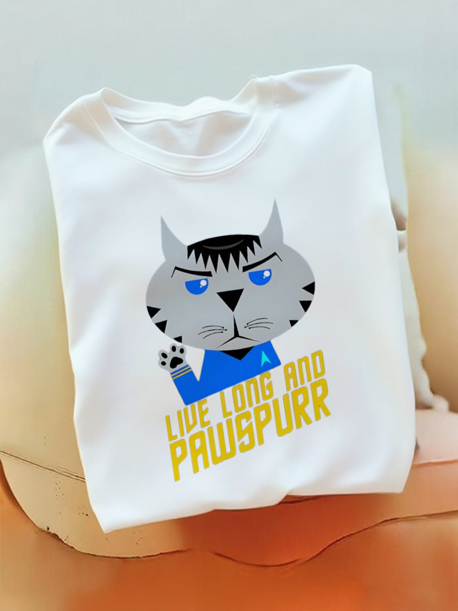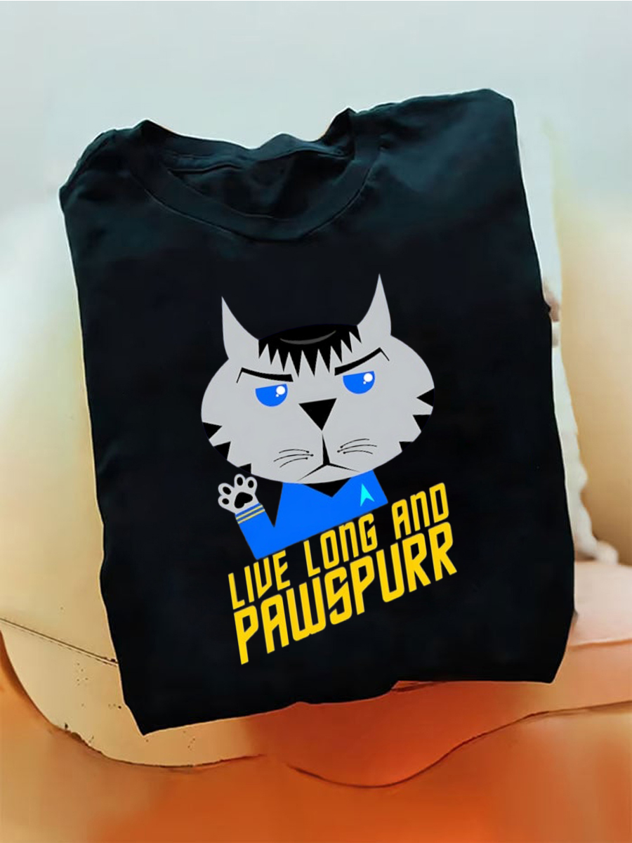 Men's Live Long and Pawspurr Funny Cat Print T-Shirt