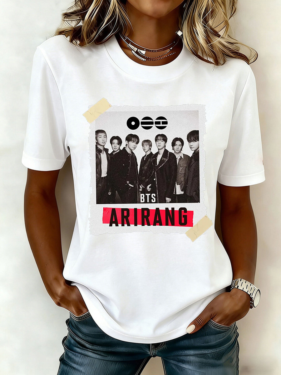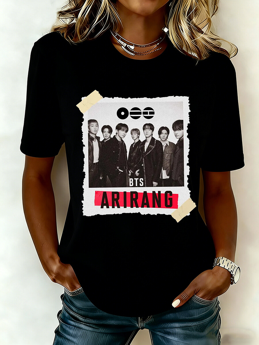 Women's Concert T-Shirt with Torn Paper Pattern - Crew Neck