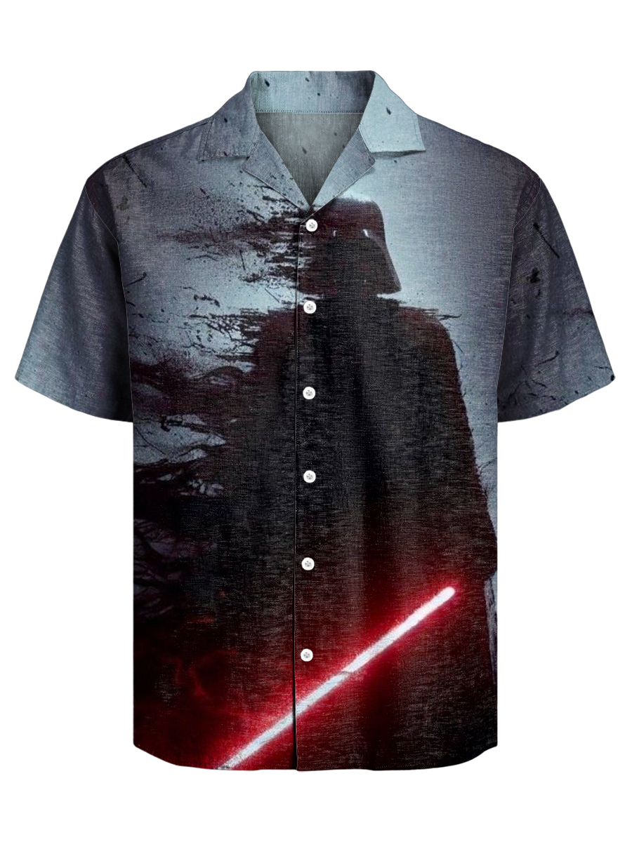 Men's Futuristic Shadow Fighter Red Light Blade Graphic Cuban Collar Shirt
