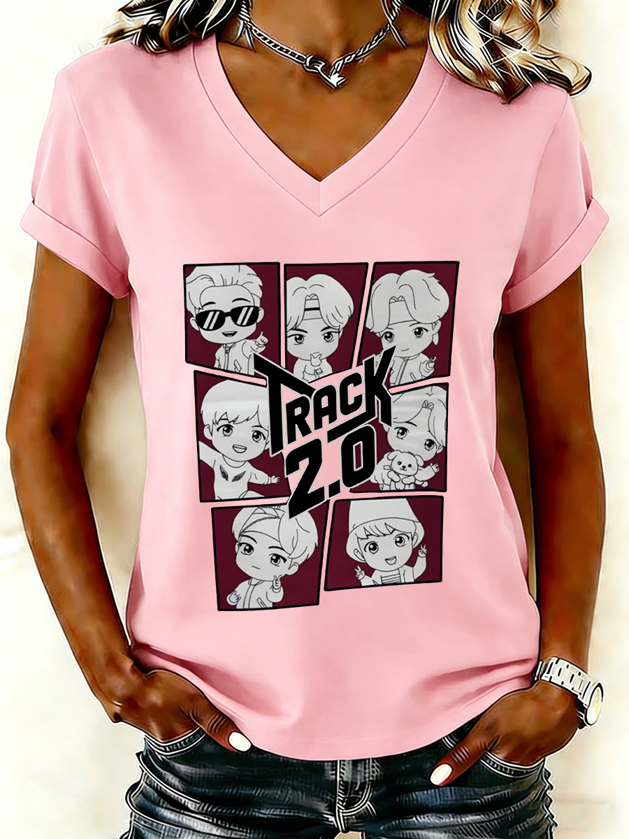 Women's Concert Cartoon Print V-Neck T-Shirt$20.99 USD$26.99 USD