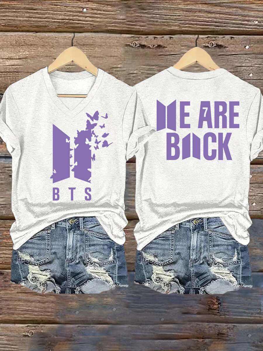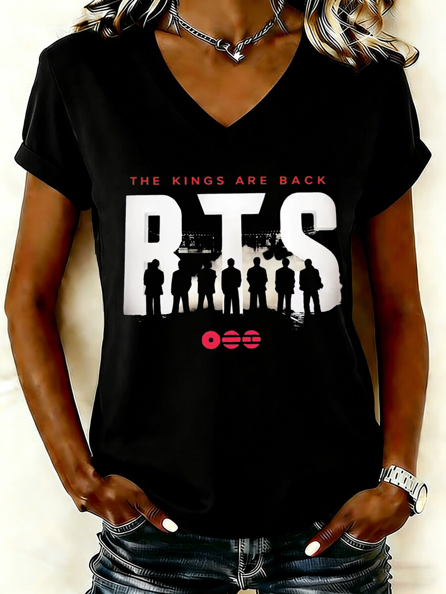Women's Music Group Photo Graphic Letter Print Casual V-Neck Concert Tee$20.99 USD$26.99 USD