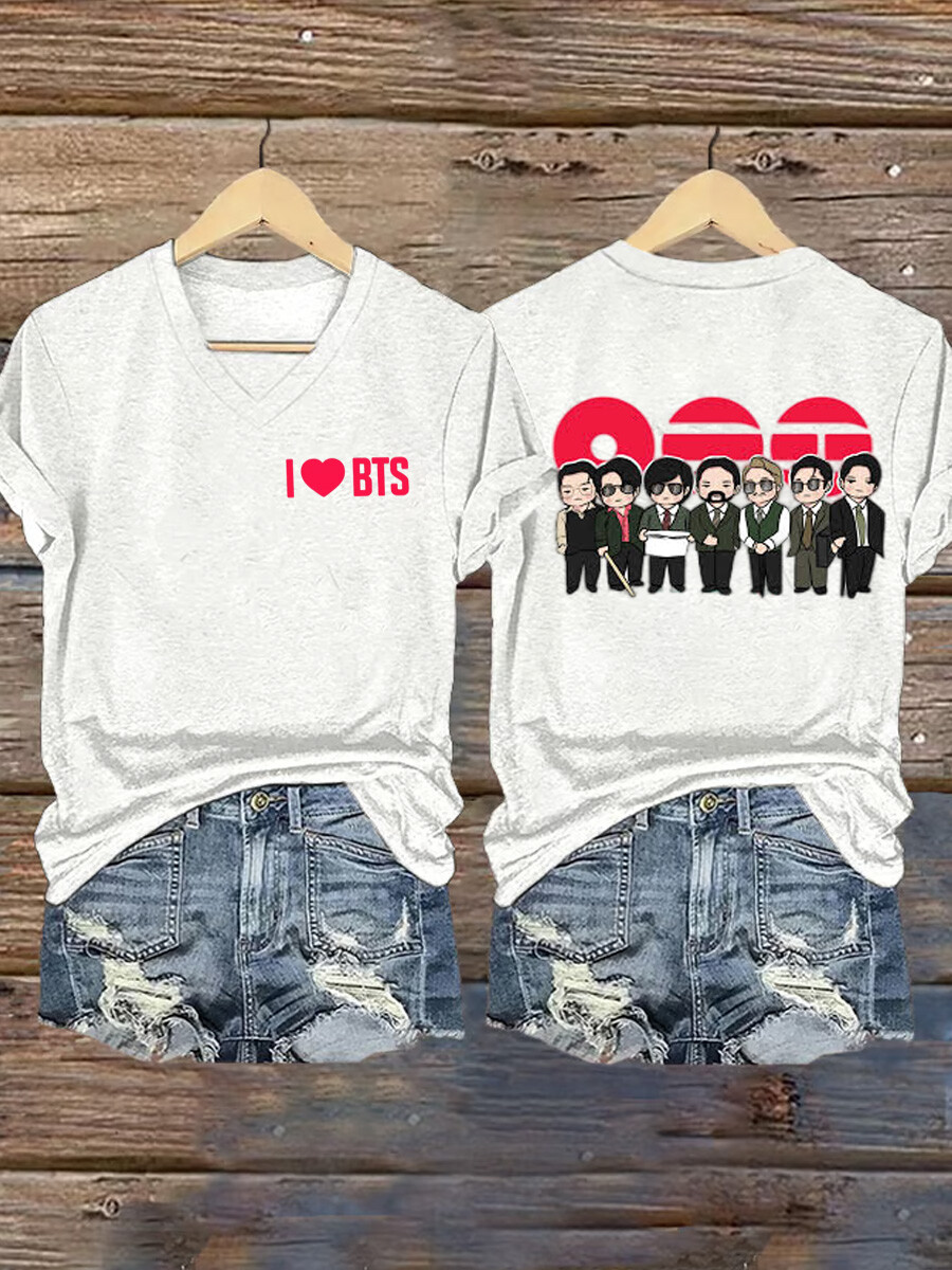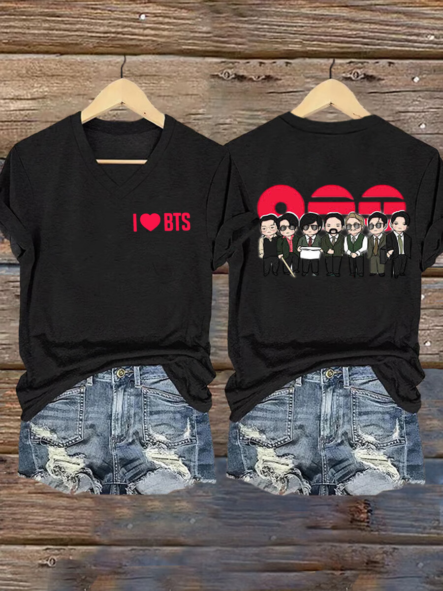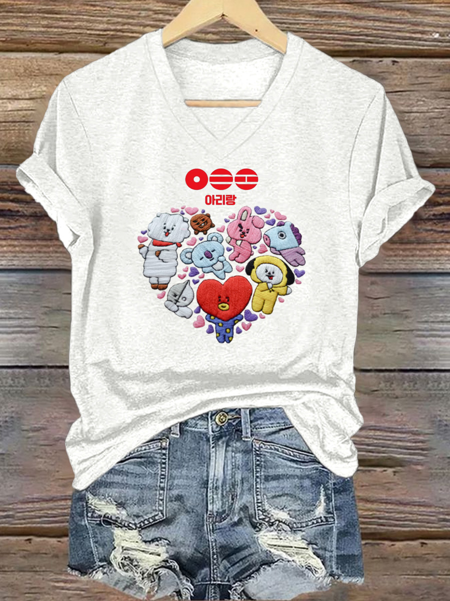 Women's V-neck cute cartoon Q version print casual trendy T-shirt$20.99 USD$26.99 USD