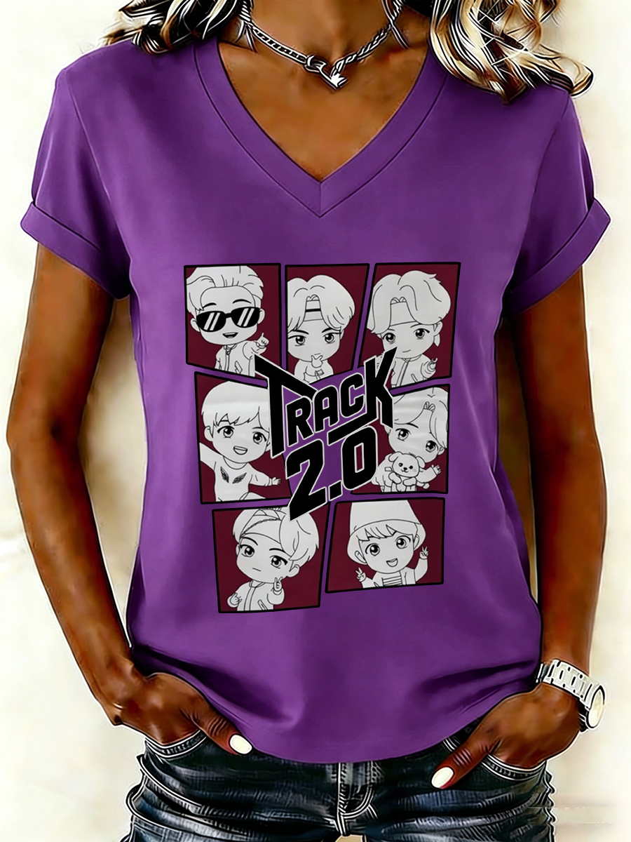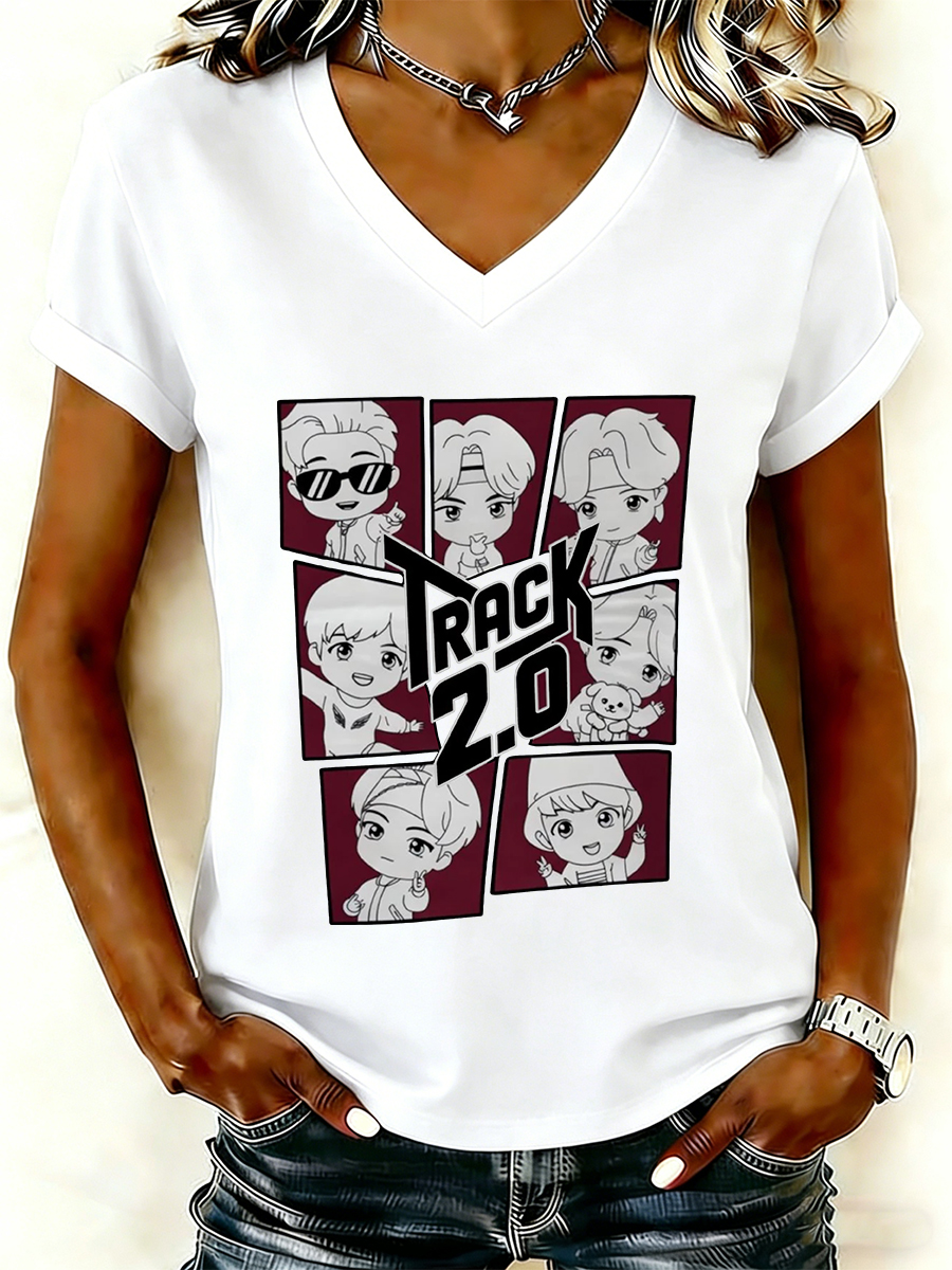 Women's Concert Cartoon Print V-Neck T-Shirt