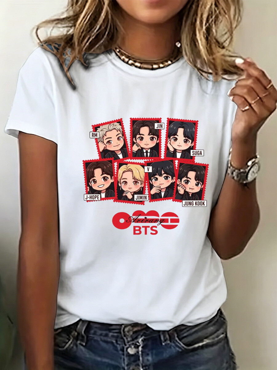 Cute Cartoon Band Member Portrait Print Short-Sleeve T-Shirt - Women's Fashion Casual Fan T-Shirt