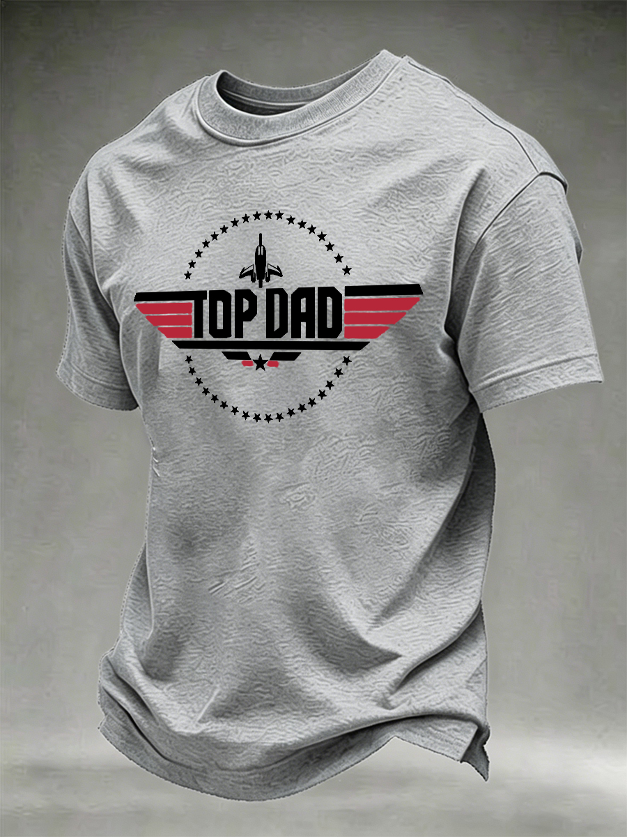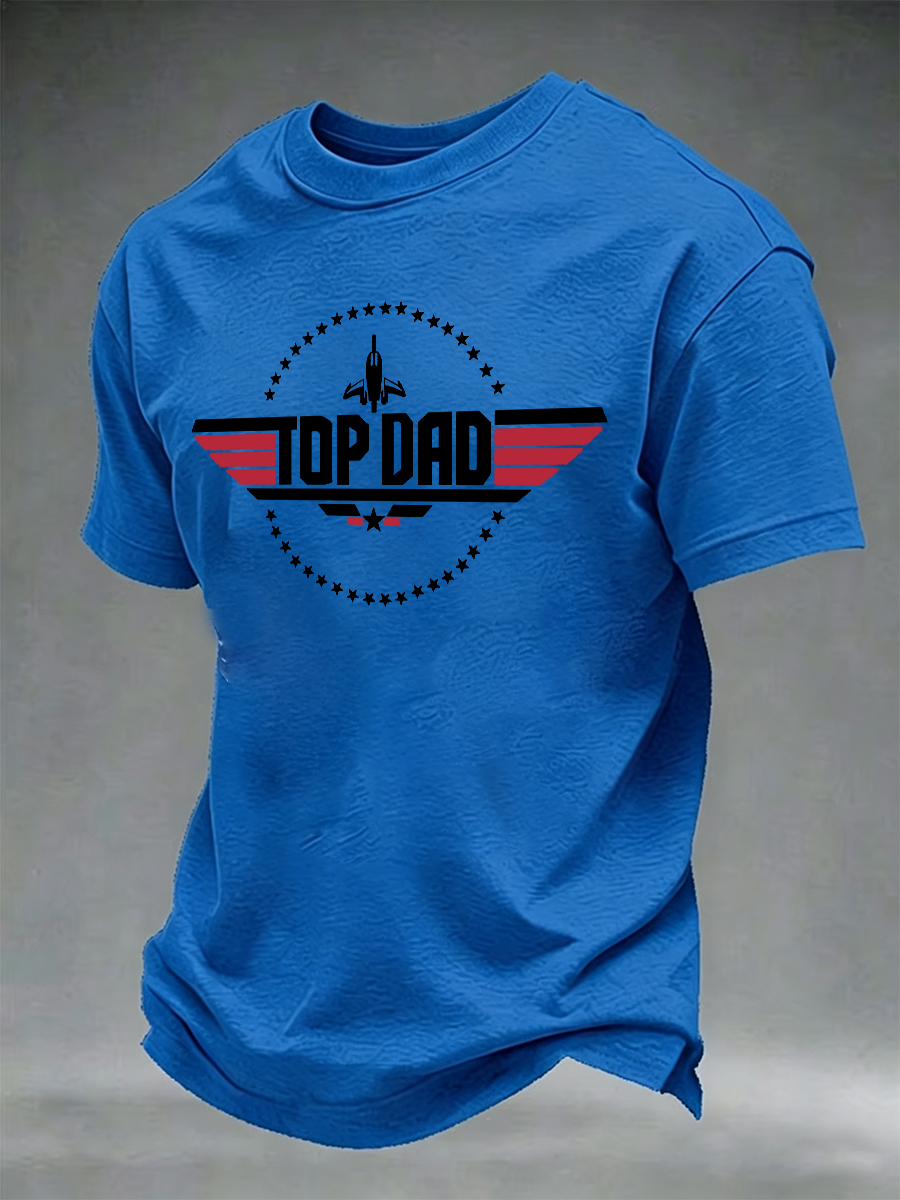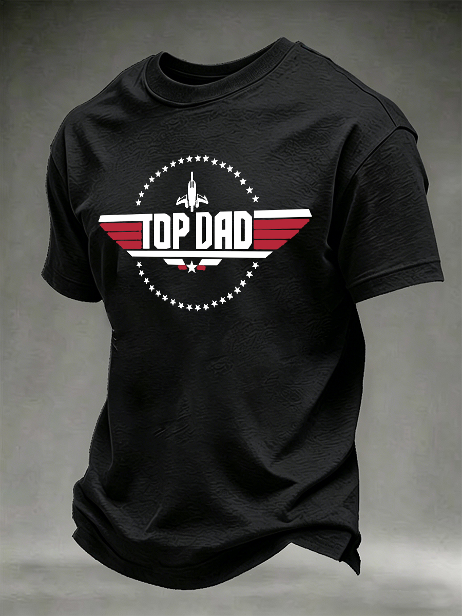 Men's "Top Dad" Airplane & Star Graphic Print Black T-Shirt
