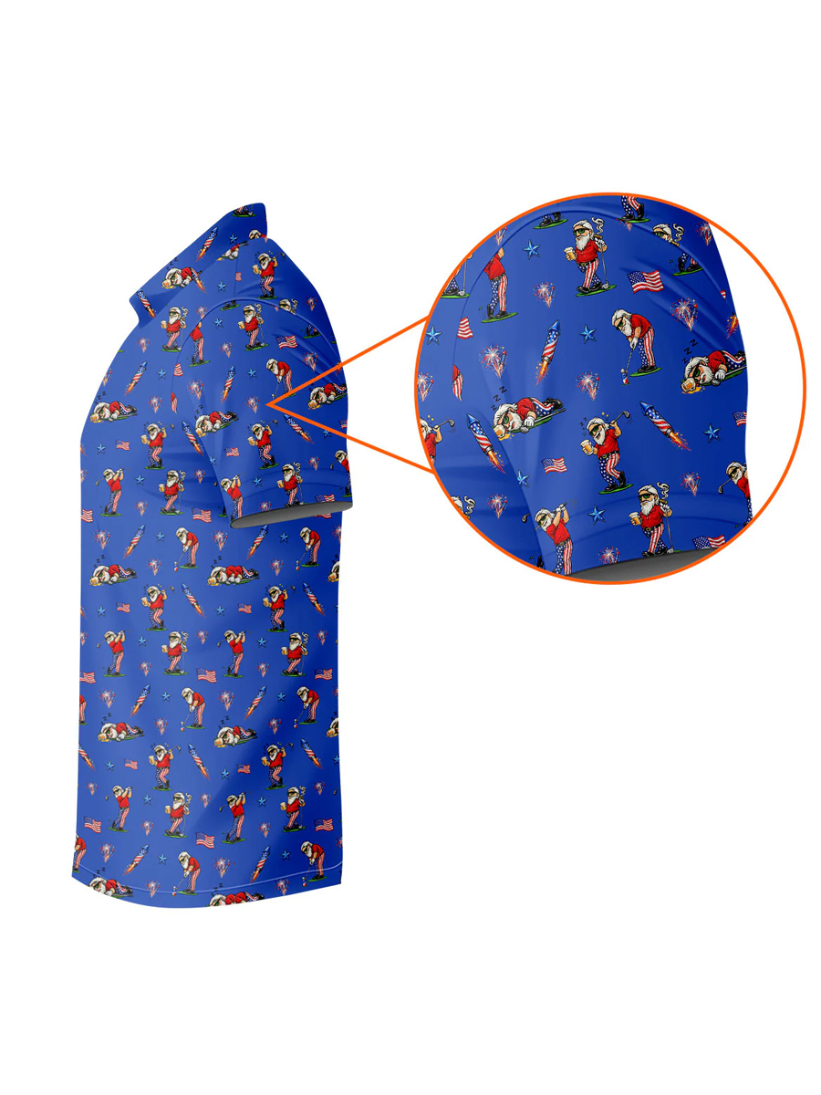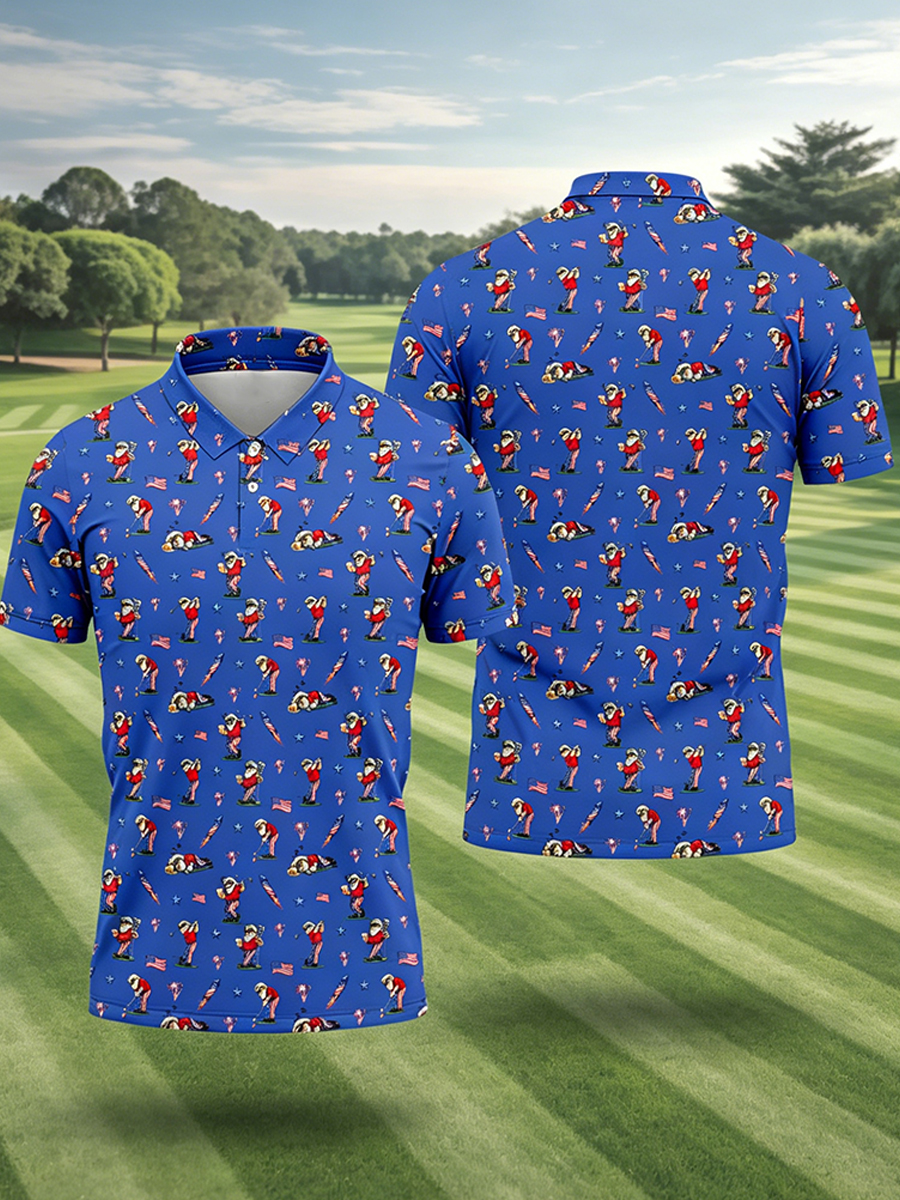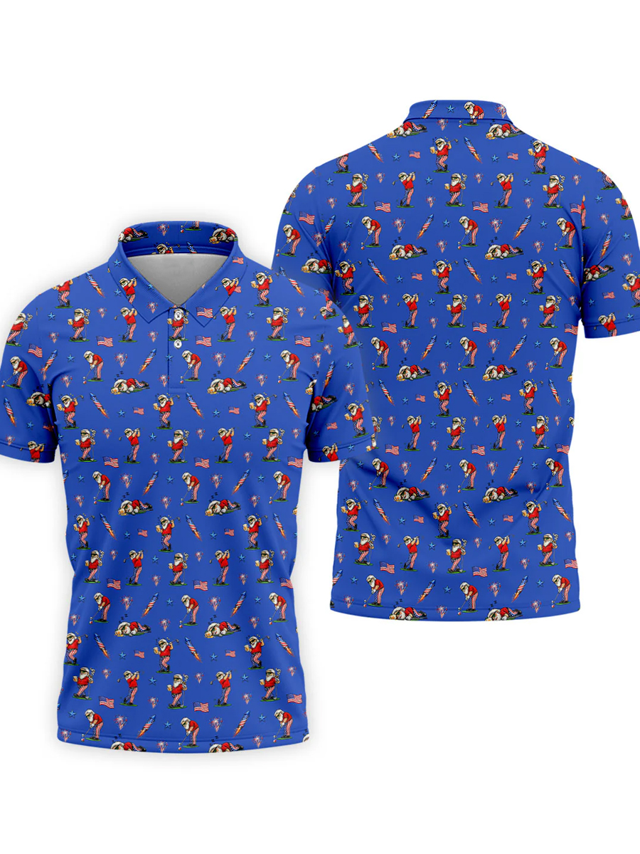 Men's All-Over Cartoon Blue Patriotic Golf Graphic Polo Shirt