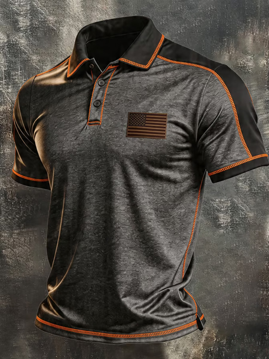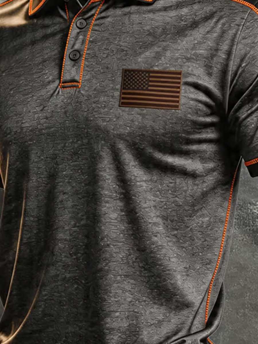 Men's Black & Charcoal Textured and Minimal Flag Patch Graphic Polo Shirt