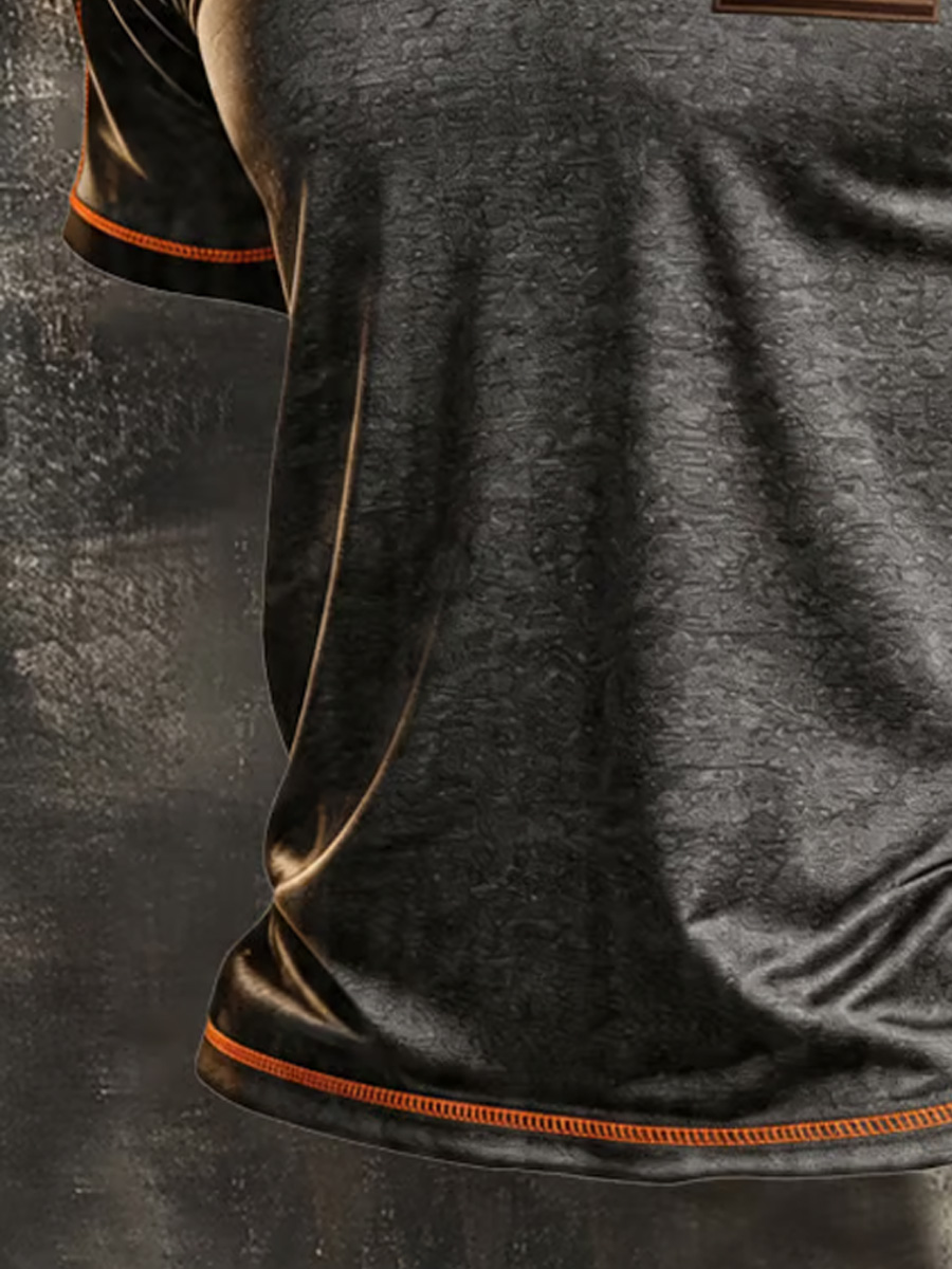 Men's Monochrome Sci-Fi Mechanical Abstract Graphic Print T-shirt