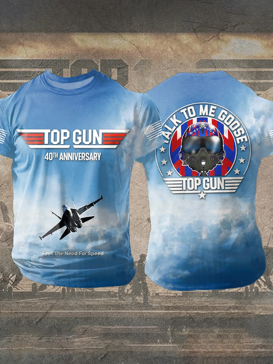 Men's Blue Sky Gradient Jet & Pilot Helmet Double-Sided T-Shirt