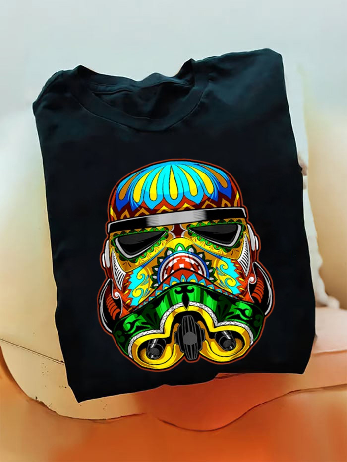 Men's Colorful Skull Pattern Space Helmet Graphic Print T-shirt