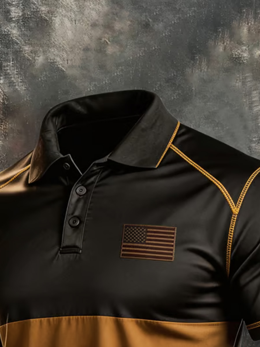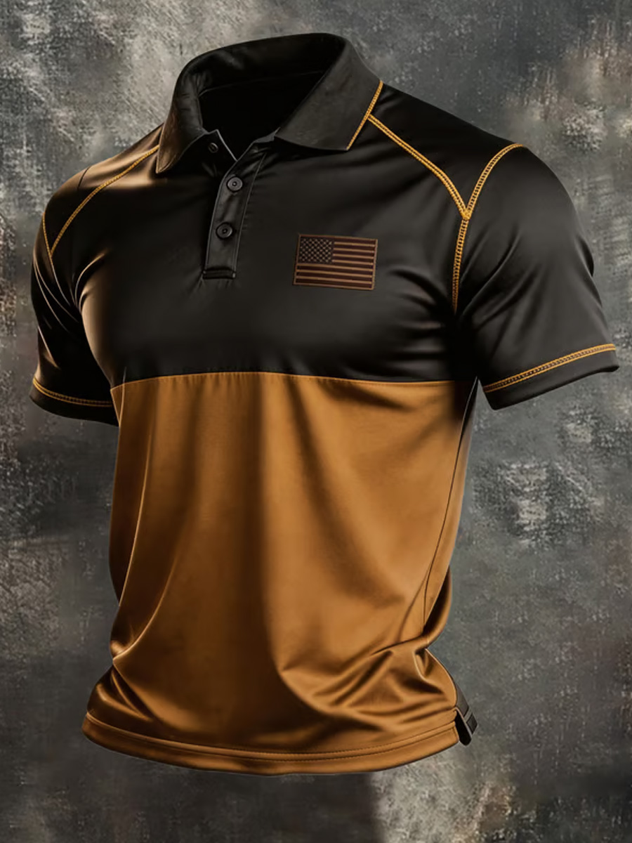 Men's Contrast Stitching and Minimal Flag Patch Graphic Polo Shirt
