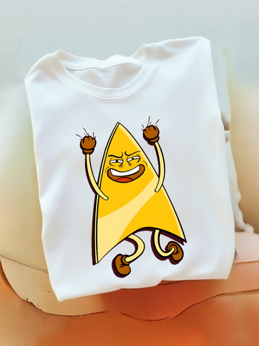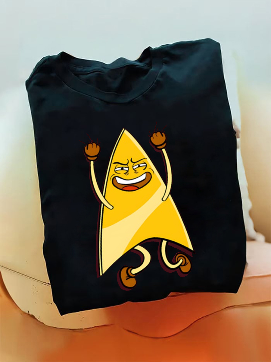 Men's Funny Dancing Yellow Triangle Cartoon Character Graphic Print T-Shirt