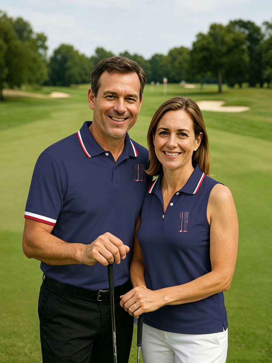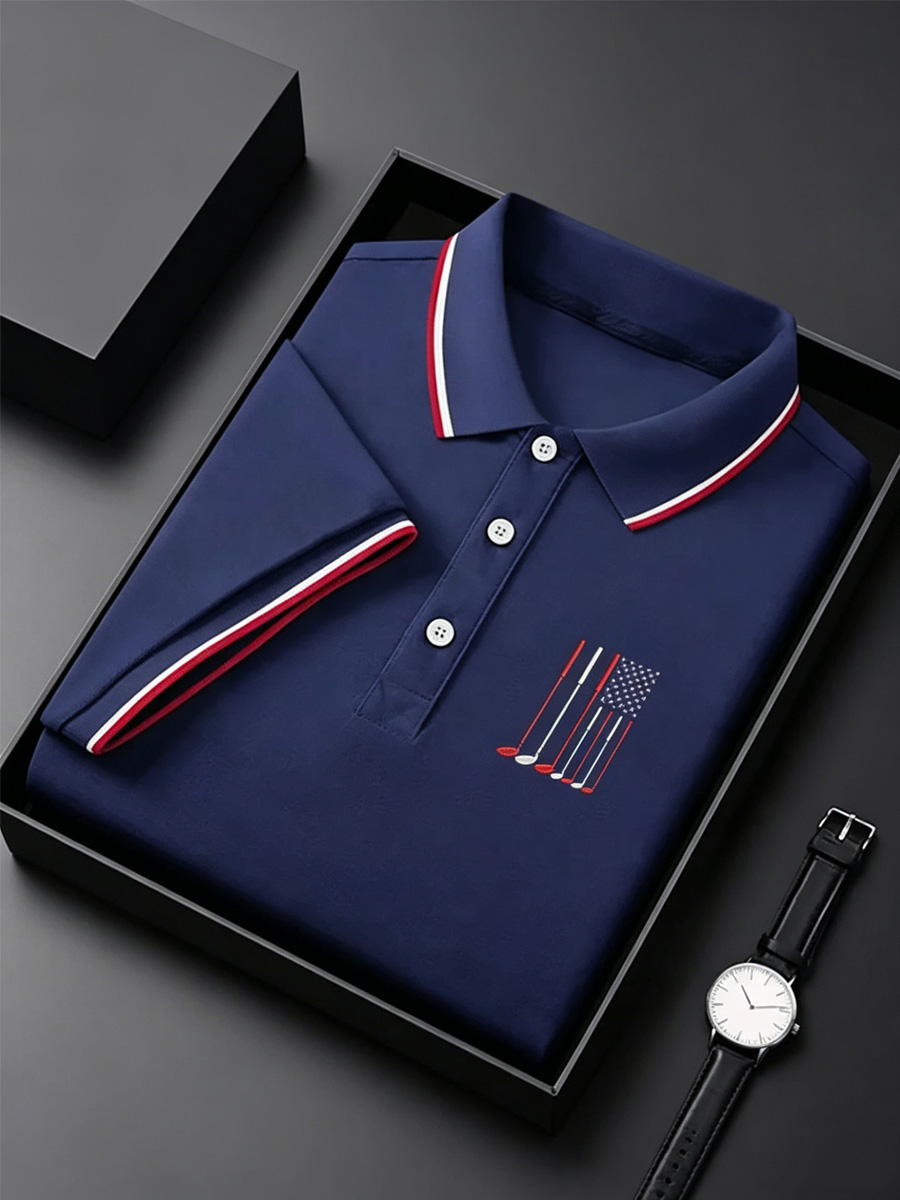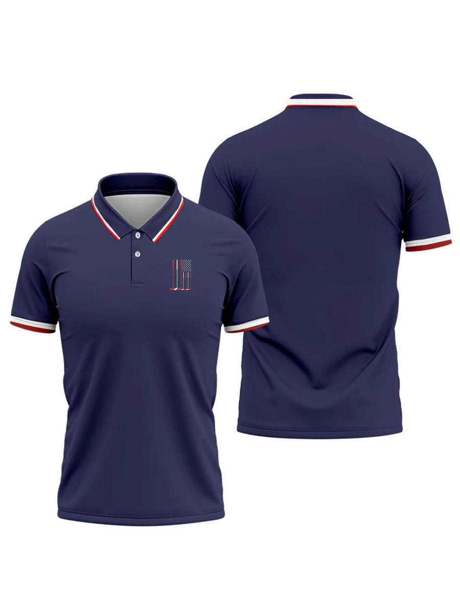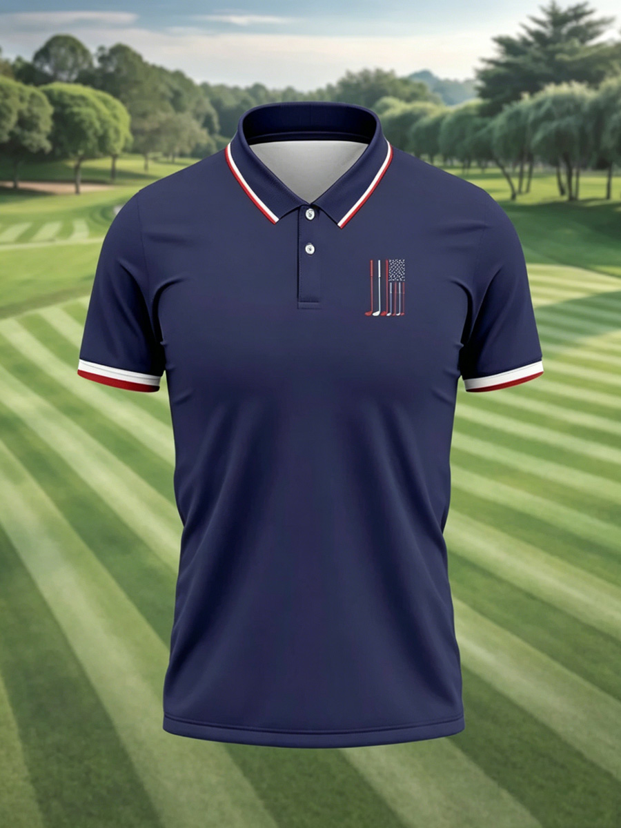 Men's Golf Club Flag Graphic Contrast Stripe Collar Polo Shirt