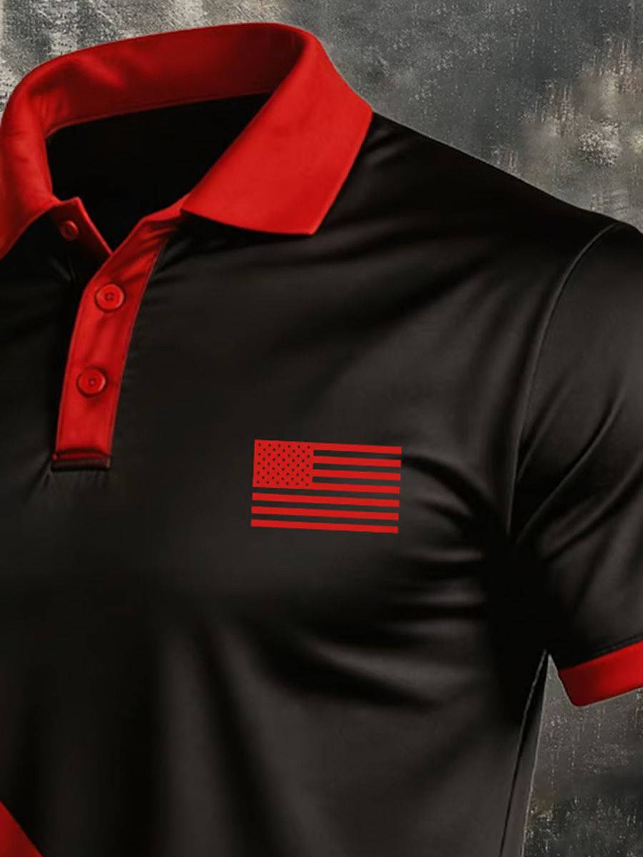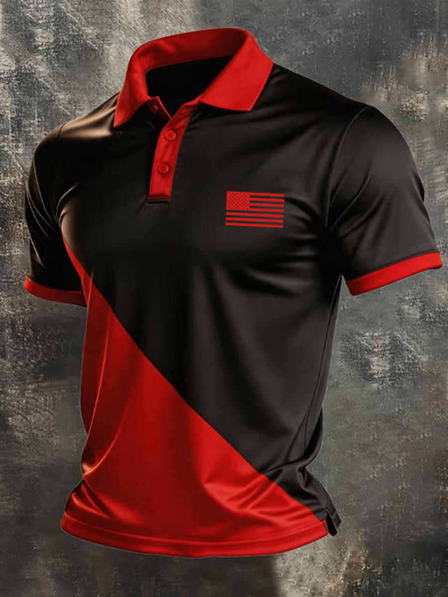 Men's Retro Patriotic Color-Block Short-Sleeve Polo Shirt