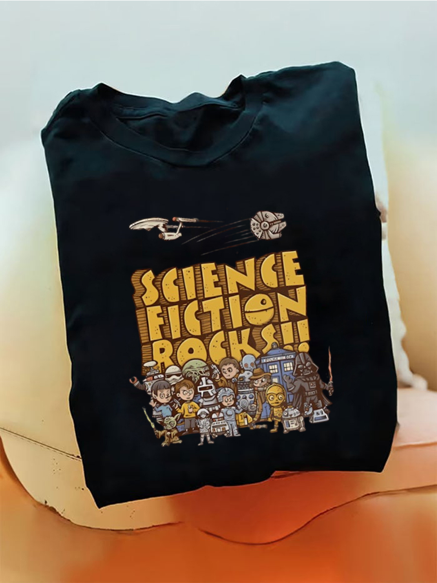 Men's Science Fiction Rocks Cartoon Cosmic Character Spaceship Graphic Print T-Shirt