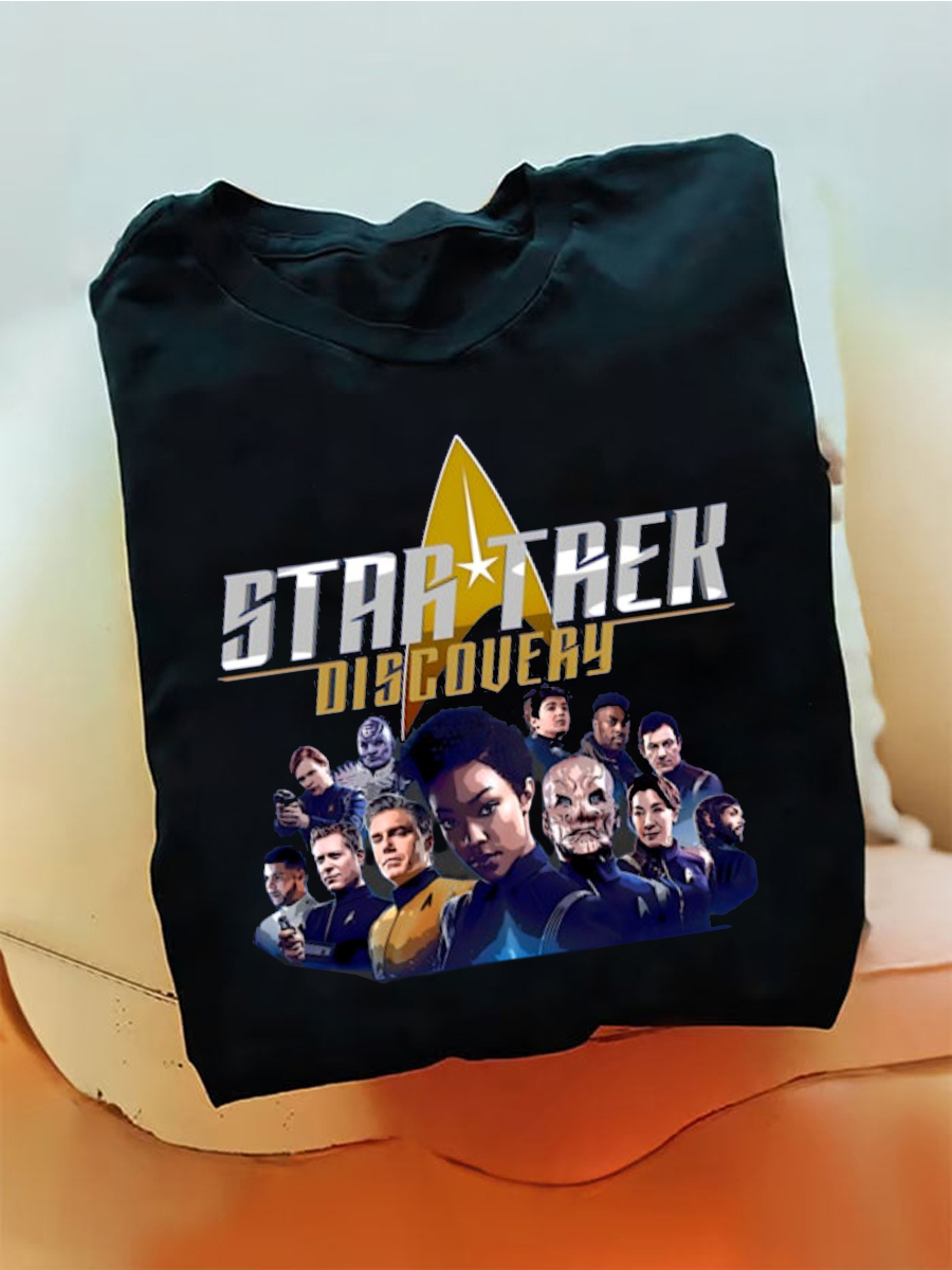 Men's Space Exploration Crew Group Portrait Triangle Star Emblem Graphic Print T-Shirt