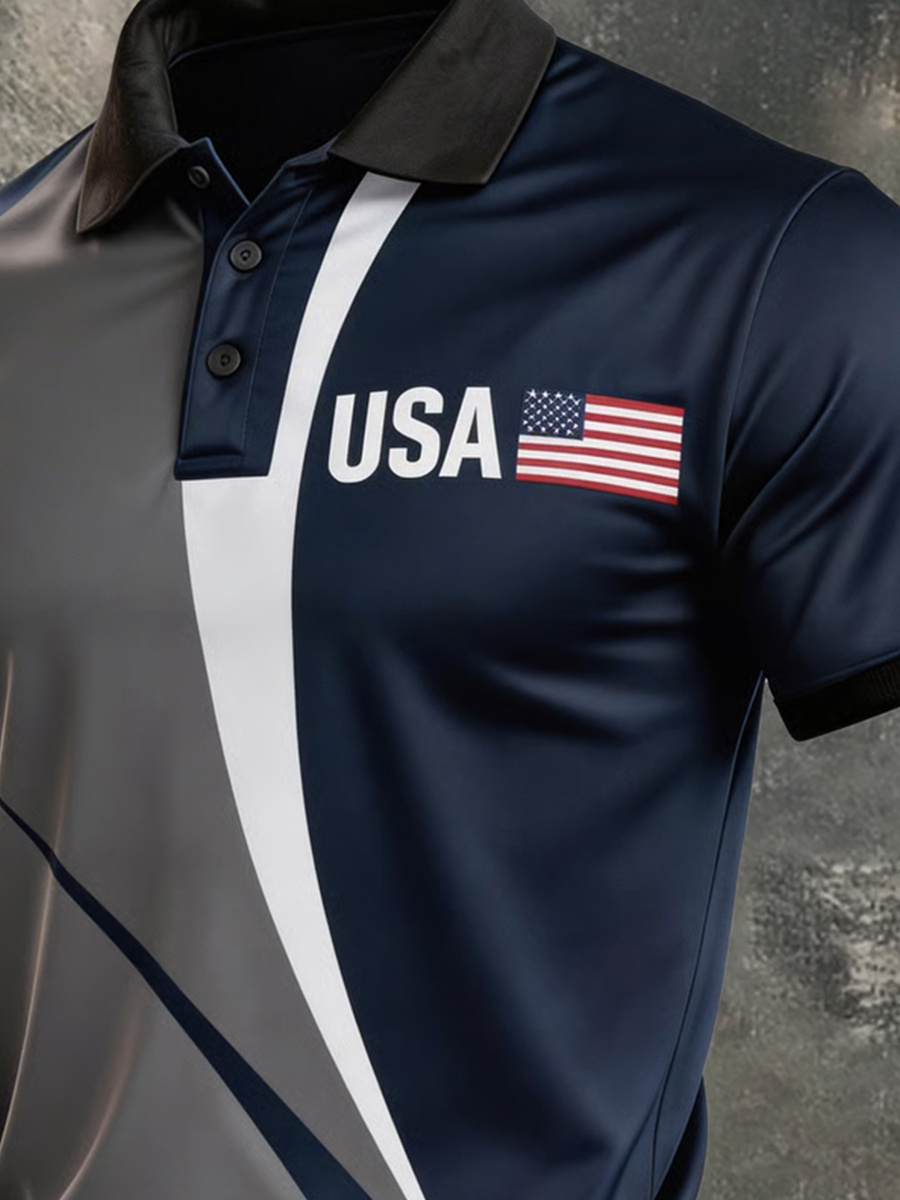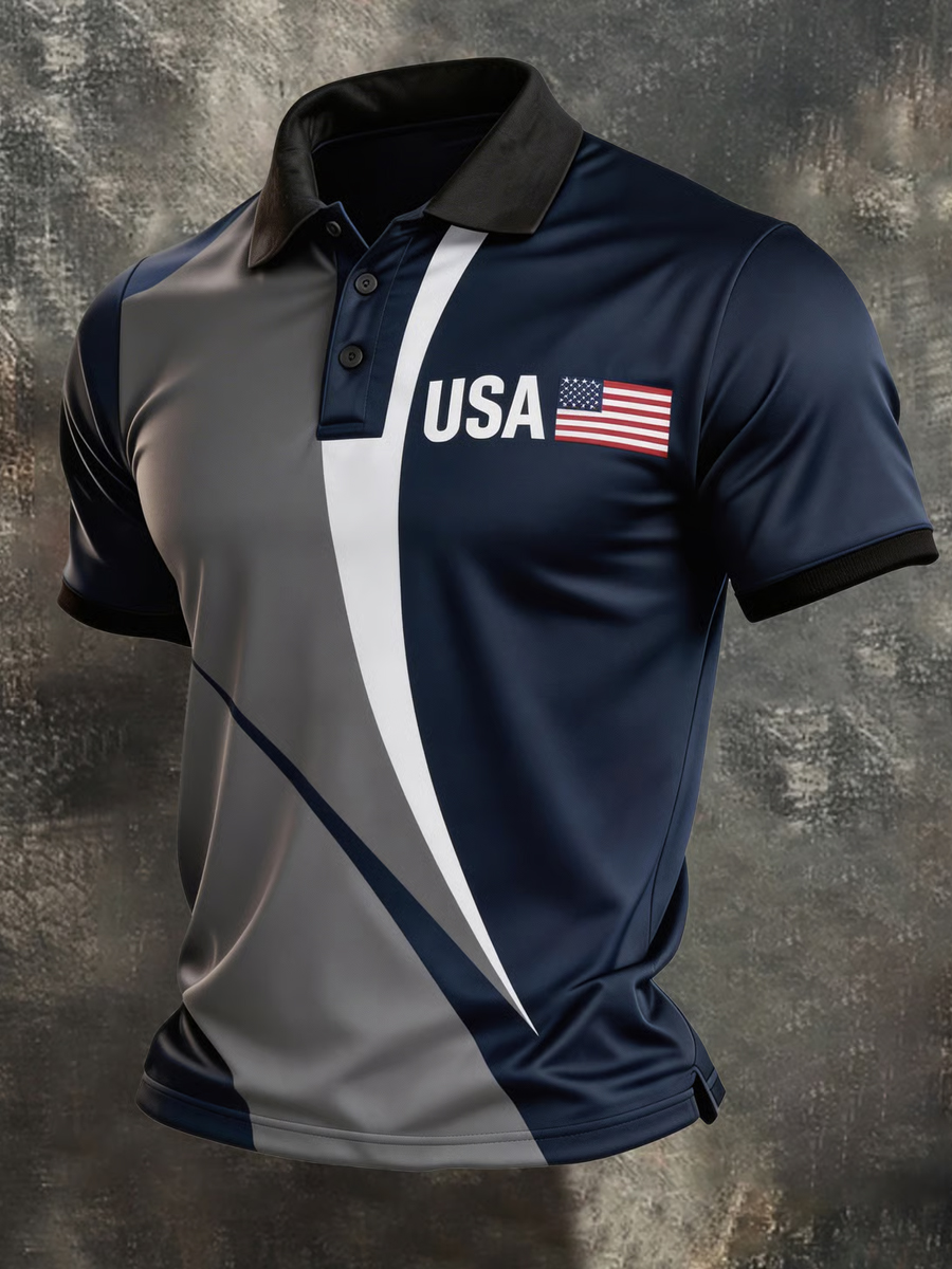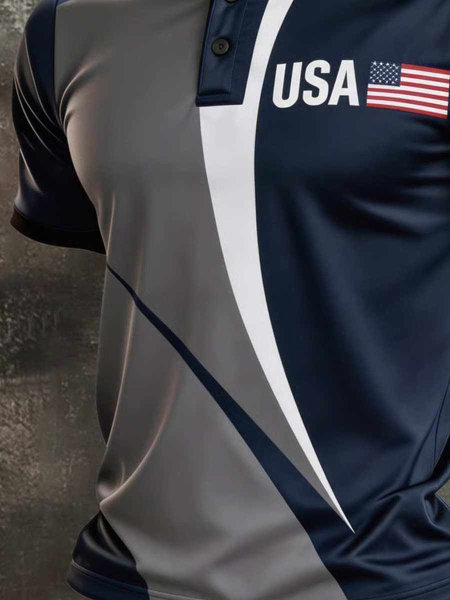 Men's Red Blue Contrast Poster Style Figure Graphic Print T-shirt