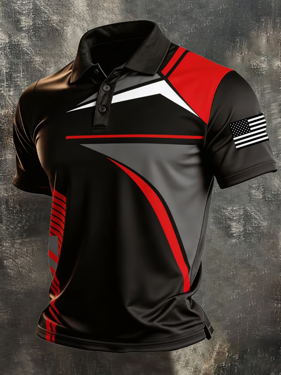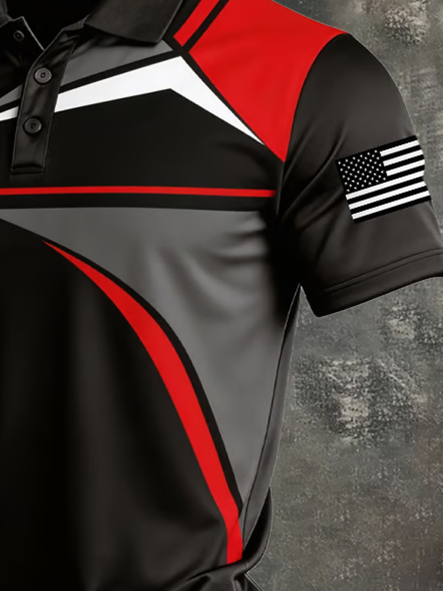 Men's USA Flag Sleeve Patch Athletic Golf Print Polo Shirt