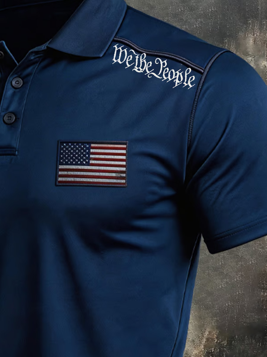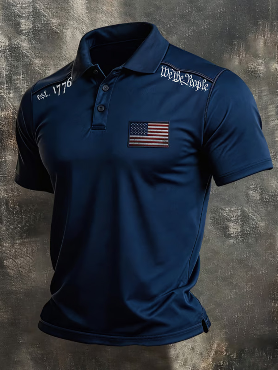 Men's Vintage 1776 Patriotic Flag Graphic Polo Shirt