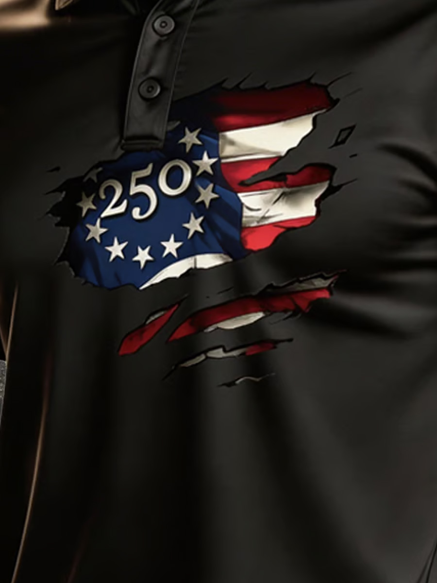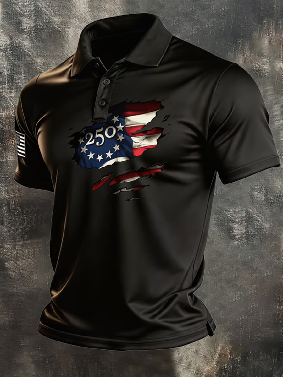 Men's Vintage Patriotic Distressed Flag Graphic Polo Shirt