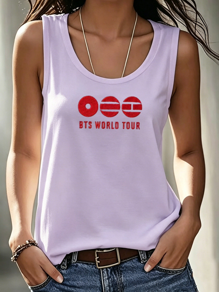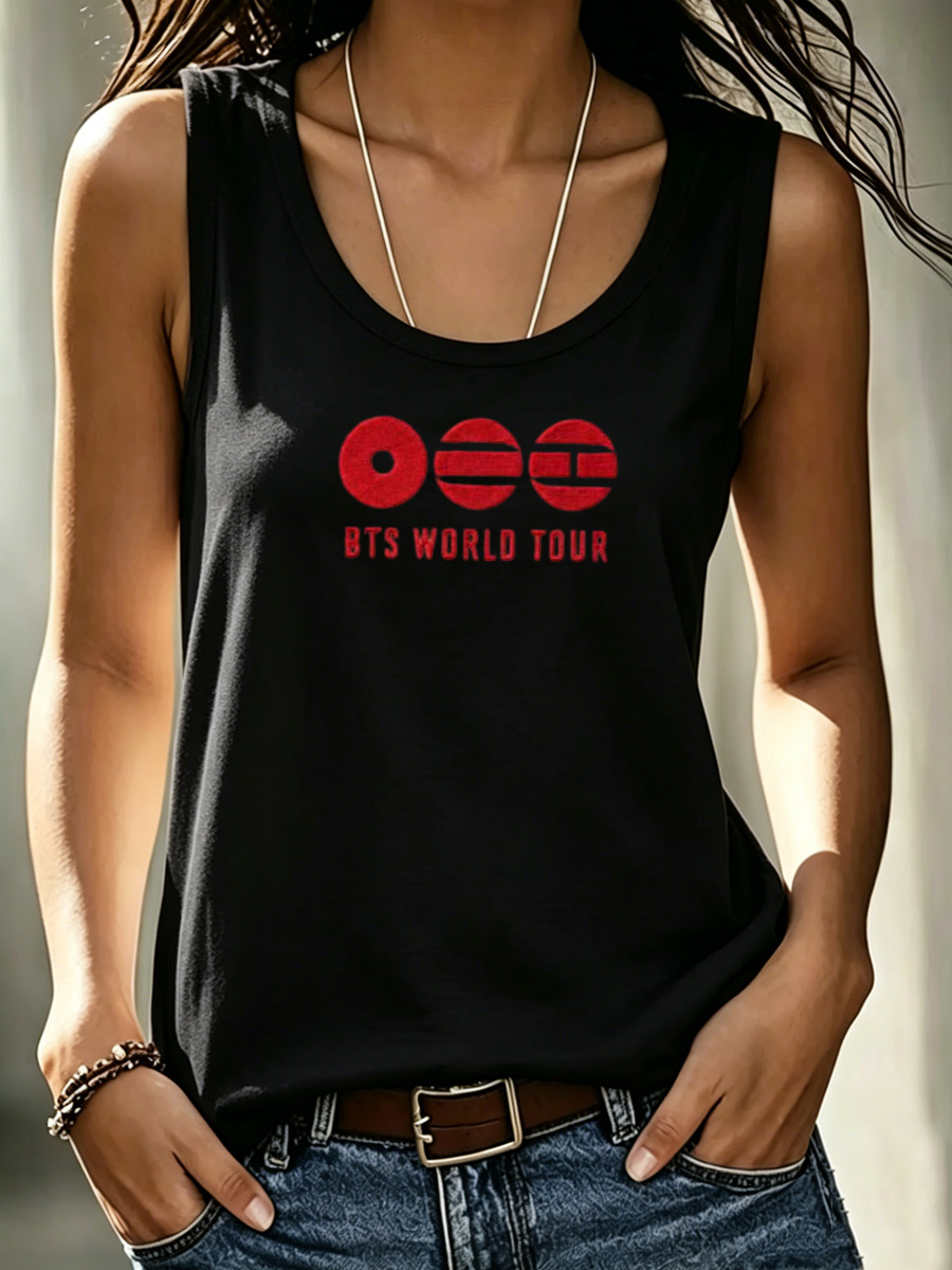 Retro World Tour Tank Top, Women's Minimalist Red Symbol Print Sleeveless Shirt, Casual Summer Cotton Vest