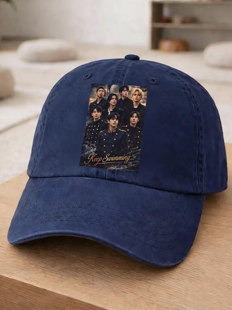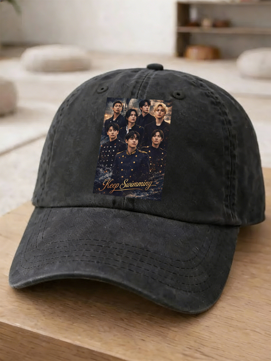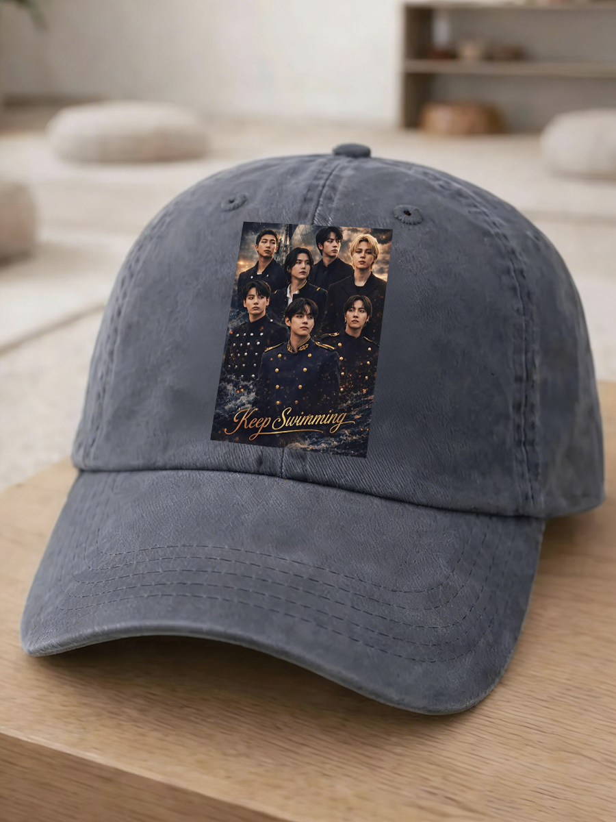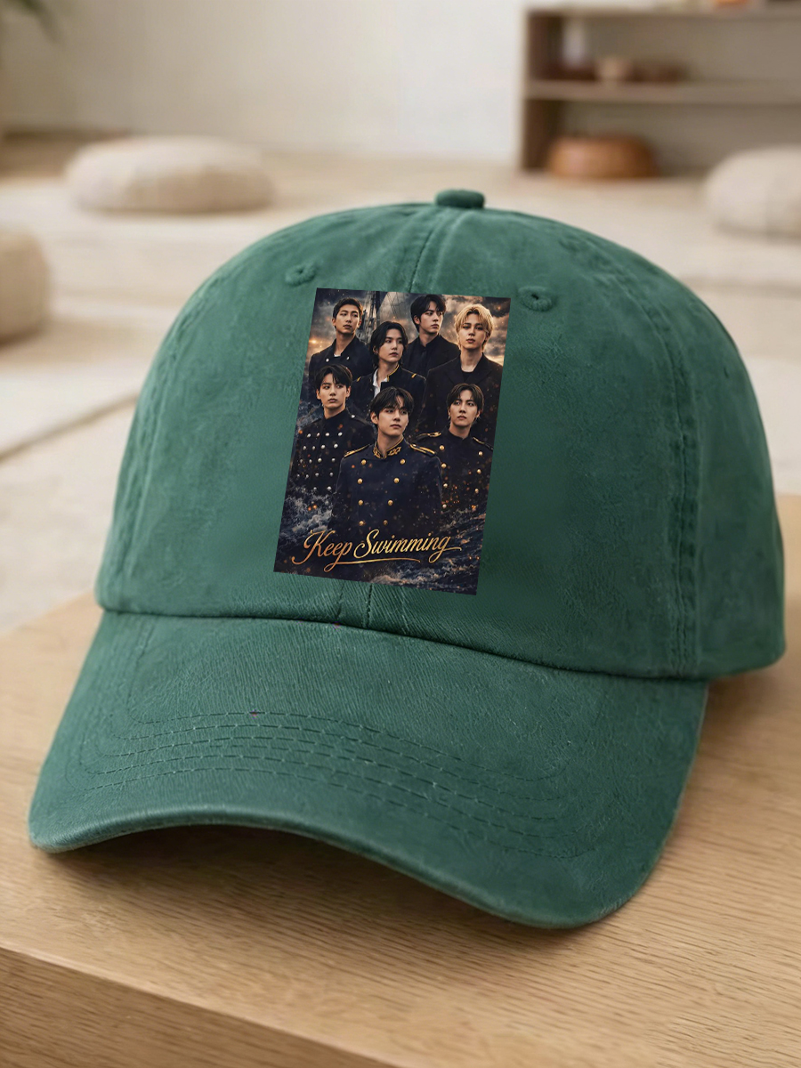 Vintage Inspirational “Keep Swimming” Quote Washed Cotton Baseball Cap