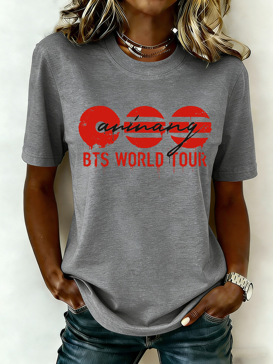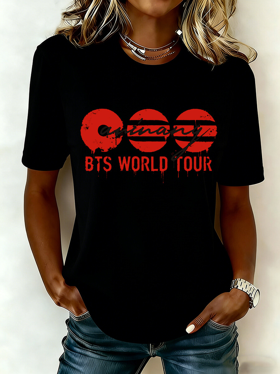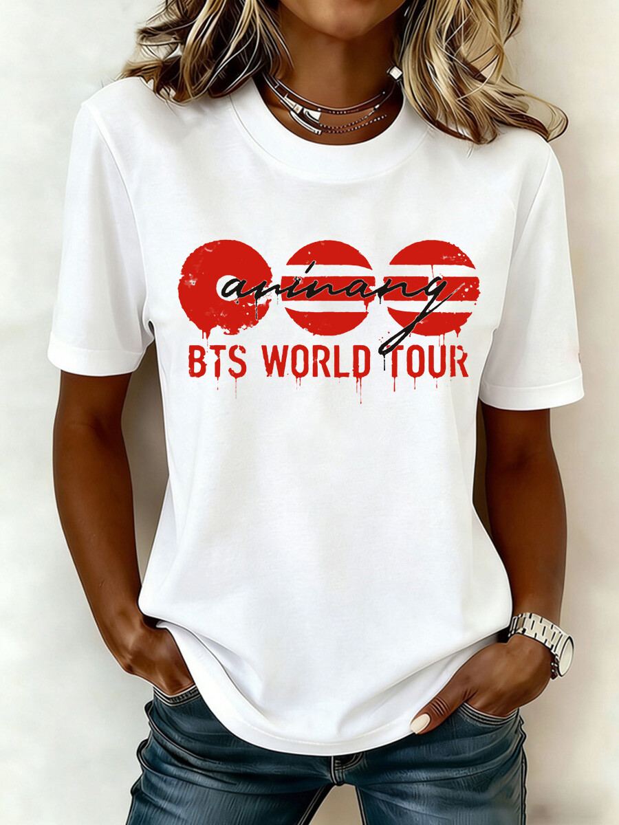 White Red Drip Art Concert Print Crew Neck T-Shirt