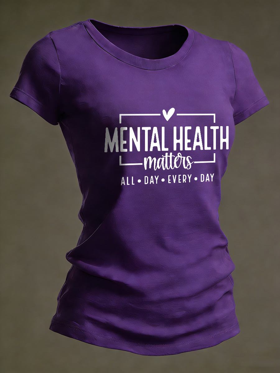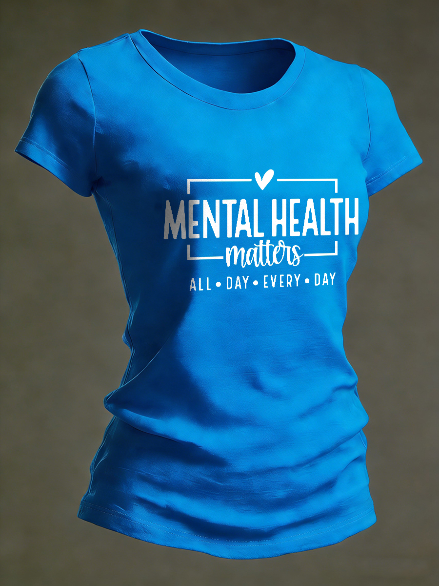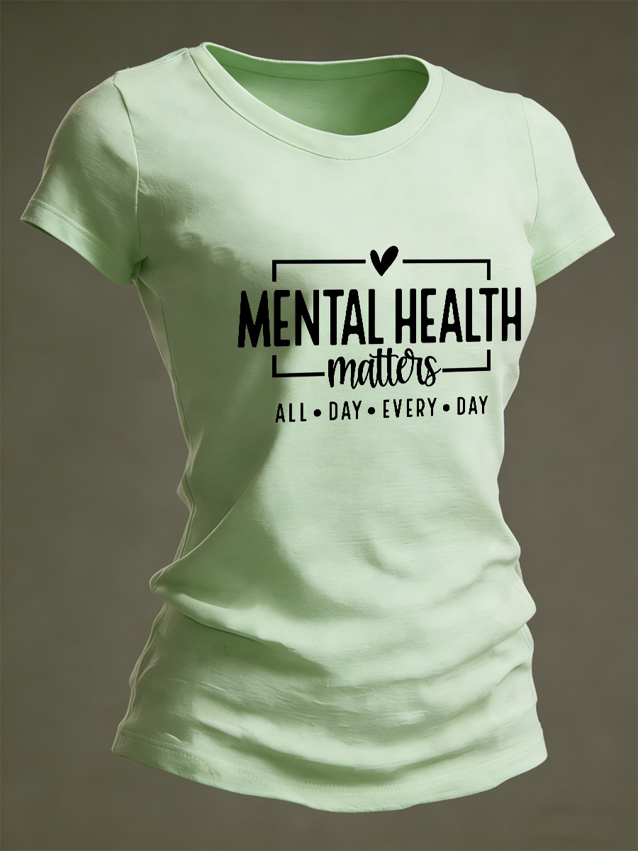 WOMEN'S "Mental Health Matters" Inspirational Print Cotton T-Shirt