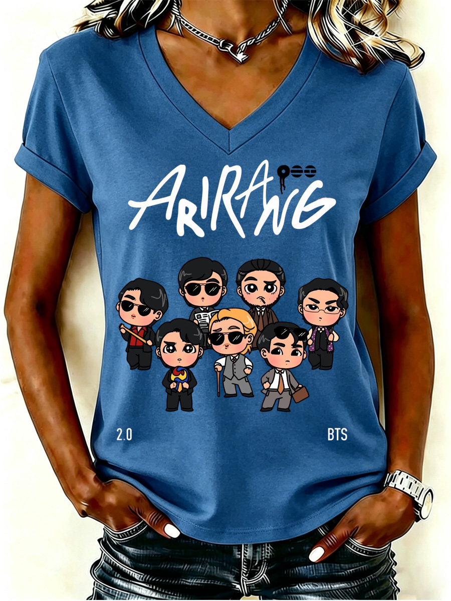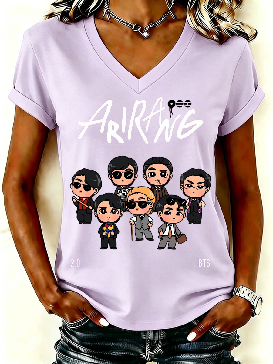 Women's Cartoon Character Graphic Print V-Neck T-Shirt