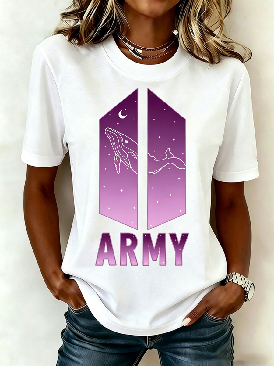 Women's Concert Whale Print Crew Neck T-Shirt