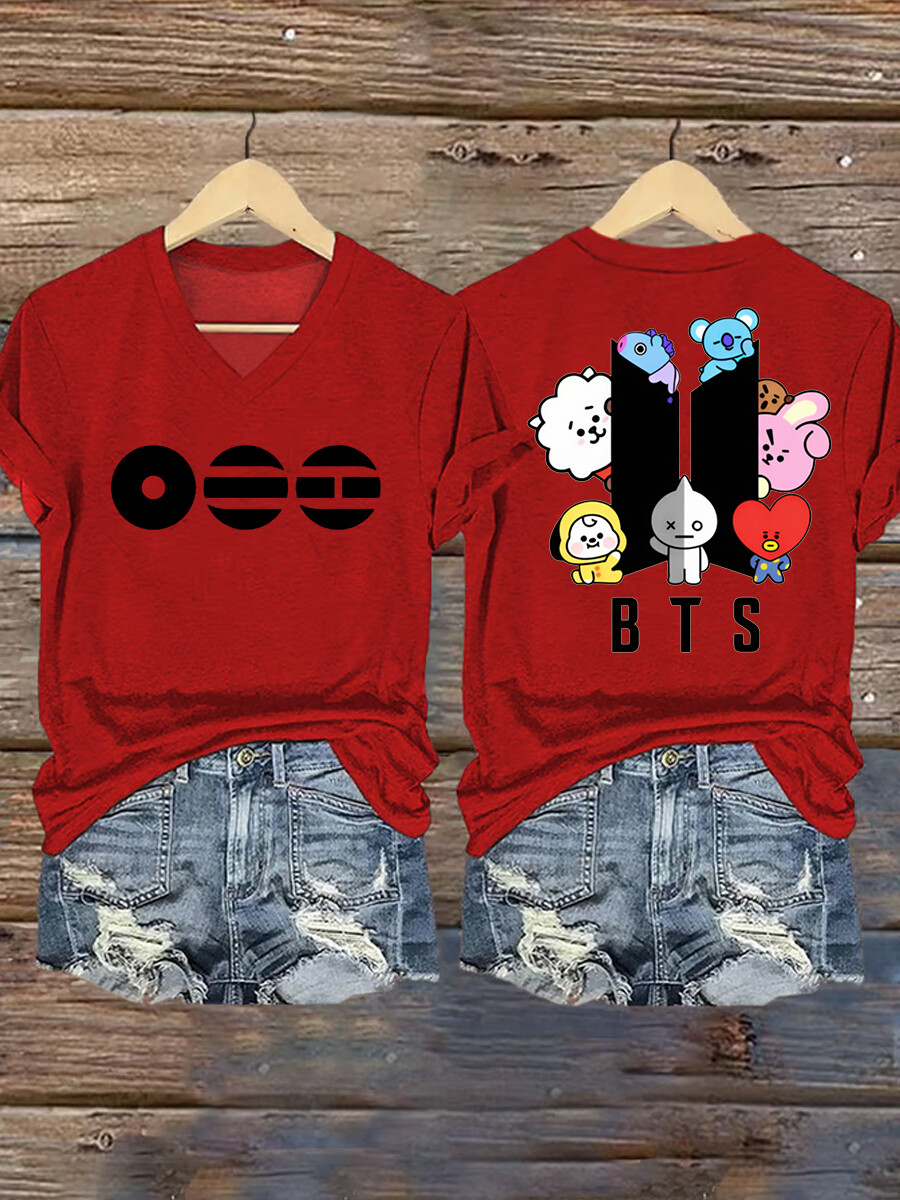 WOMEN'S Cute Cartoon & Geometric Symbol Double-Sided V-Neck T-Shirt