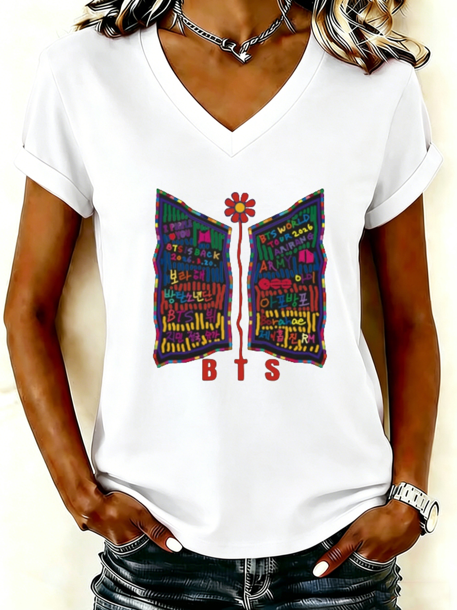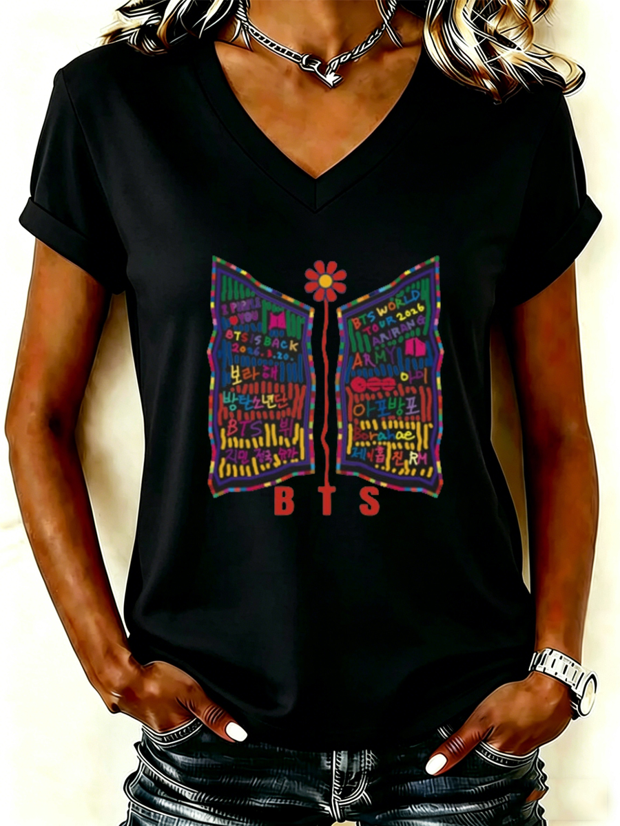 Women's Fashion V-Neck Art Graffiti Print T-Shirt