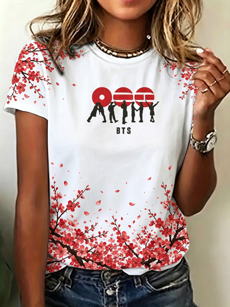 Women's Plum Blossom and Floral Band Silhouette Art Print T-shirt