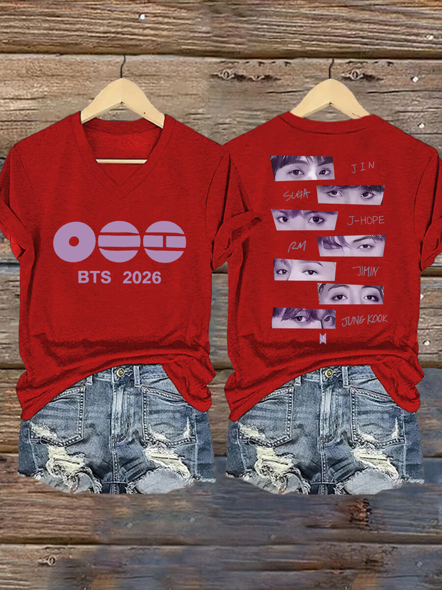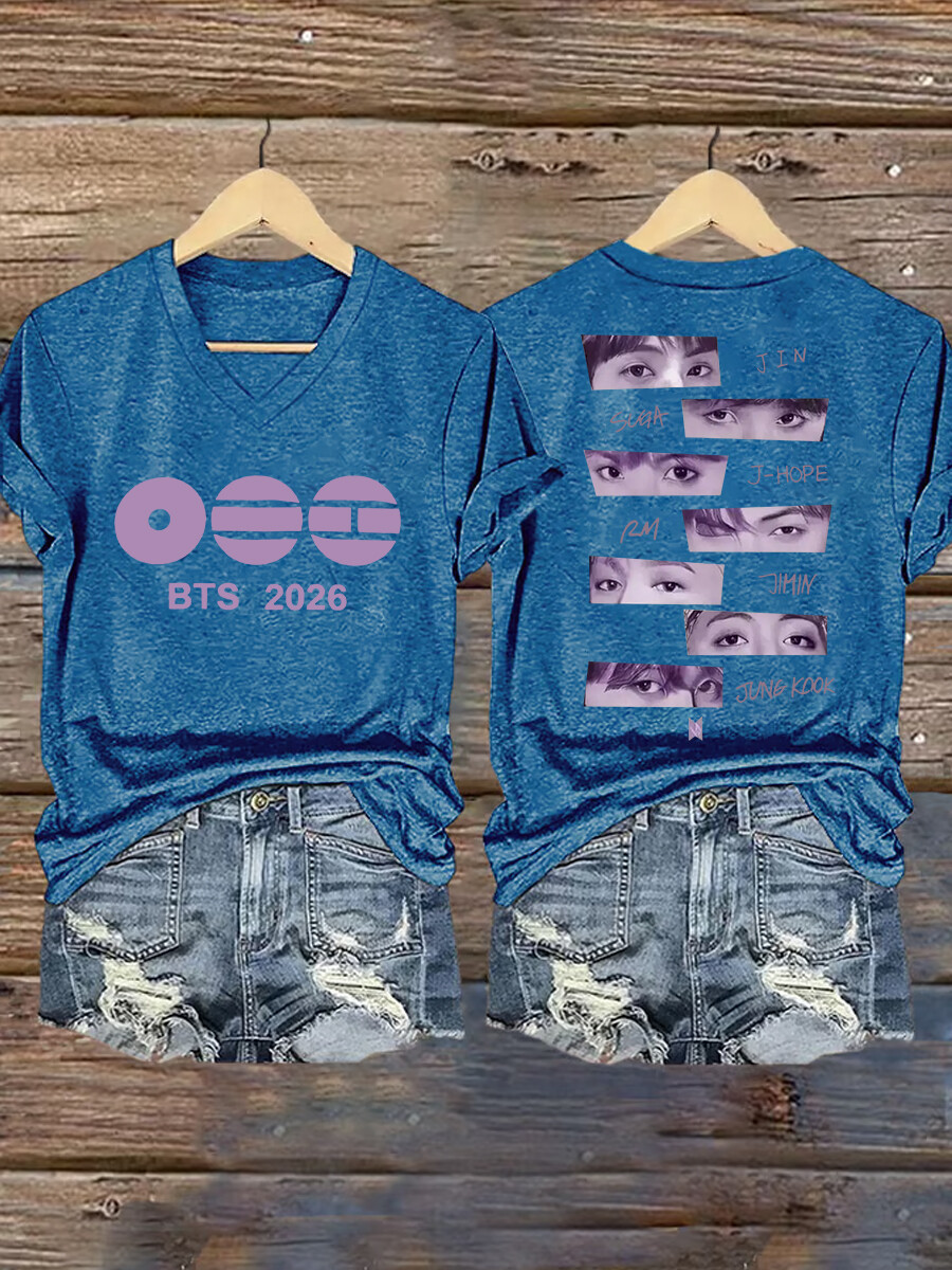 Women's Purple Minimalist Symbol Print and Idol Eye Photo Collage Back V-neck T-shirt