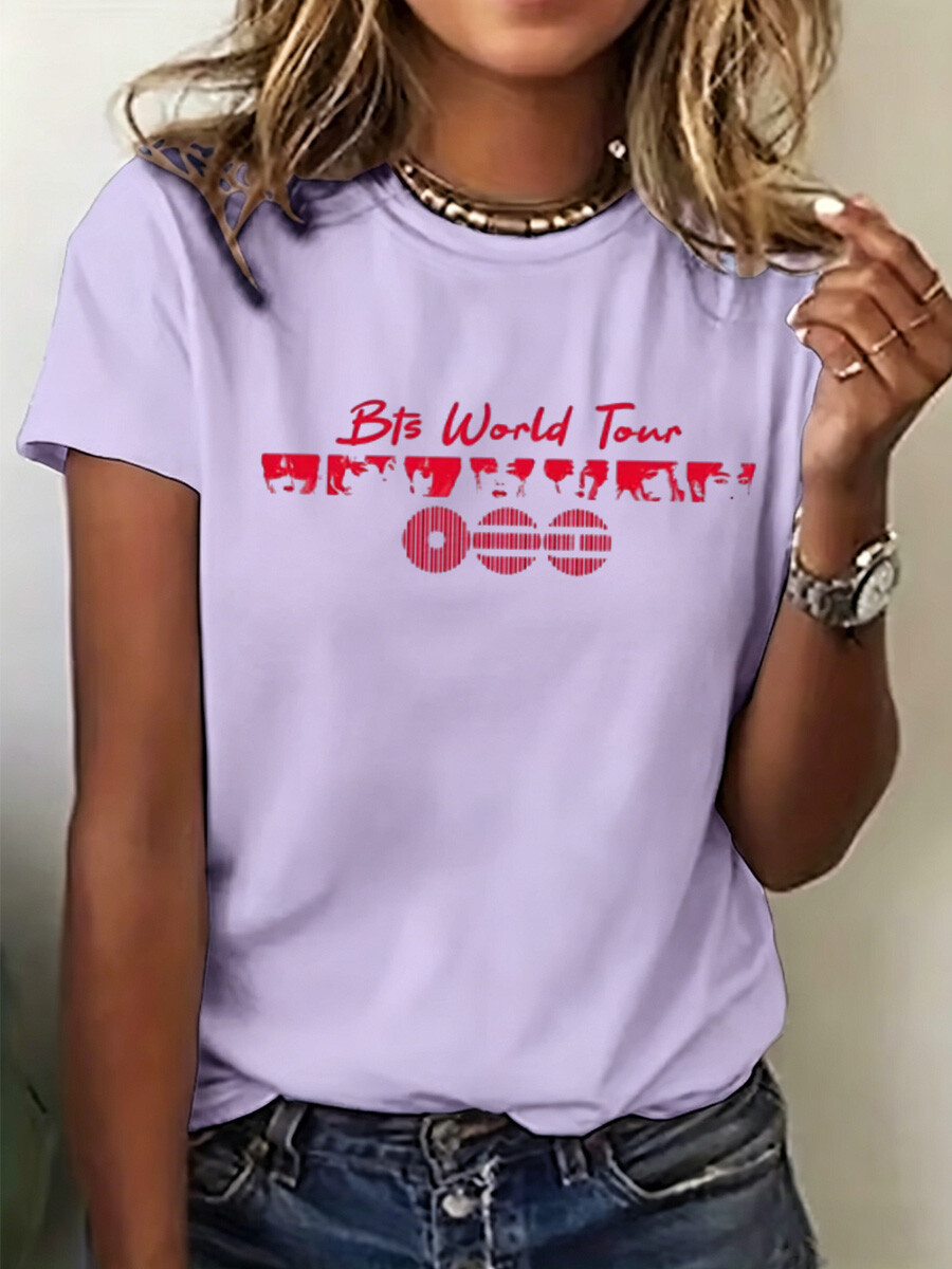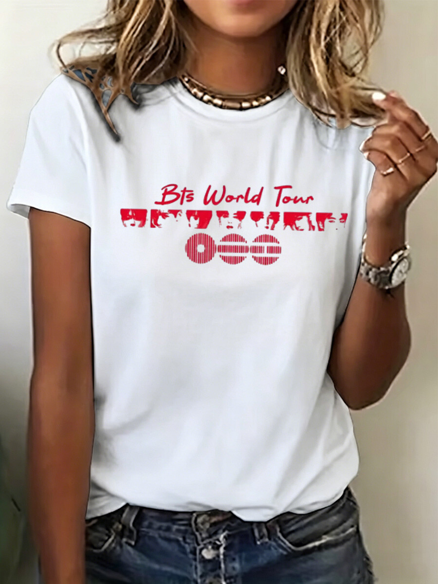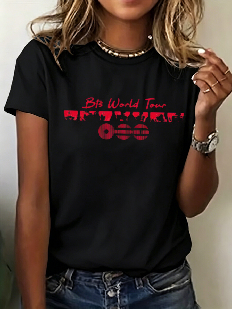 Women's Red Silhouette Band Portrait Print Crew Neck T-Shirt