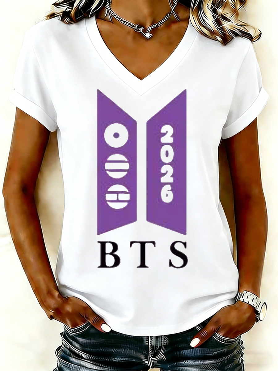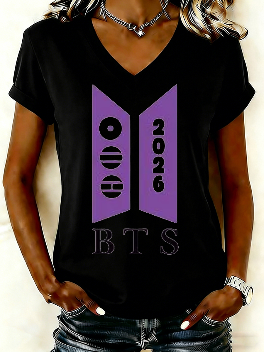 WOMEN'S Simple Purple Accent Graphic Short Sleeve T-Shirt
