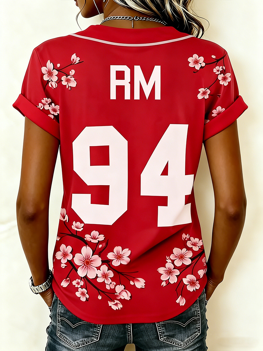 Women's V-Neck Cherry Blossom Graphic Tee