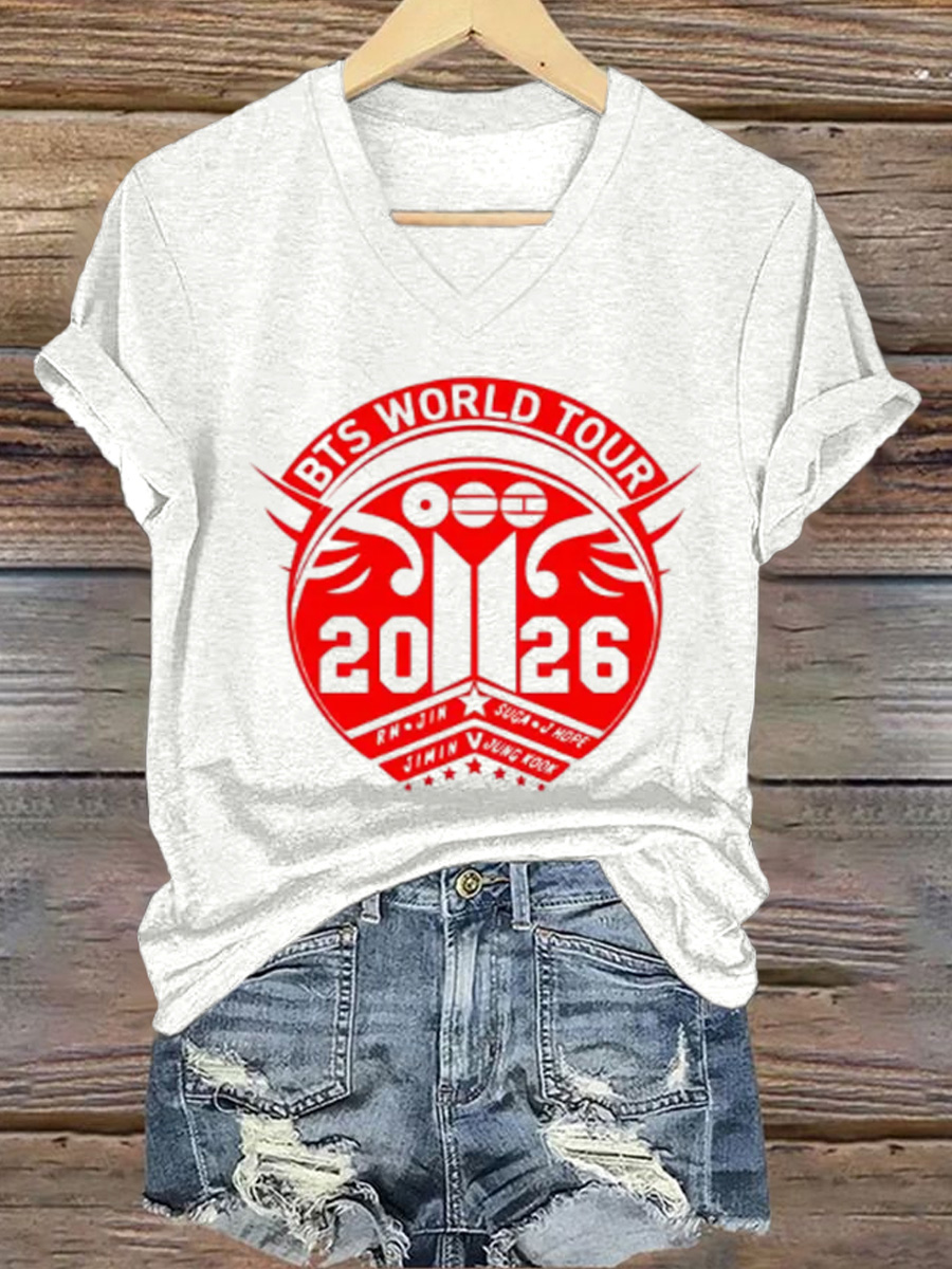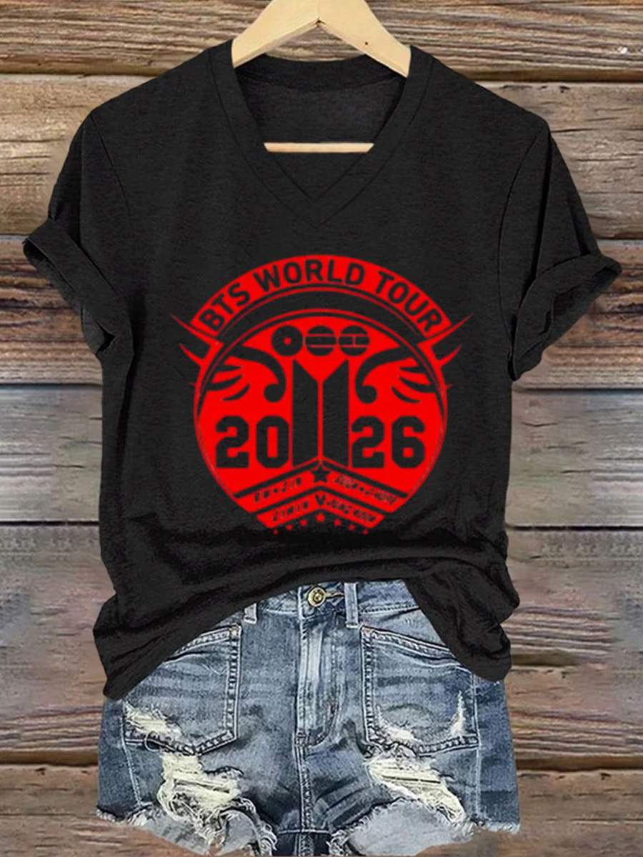 Women's Vintage Red Circle Music Tour 2026 Graphic V-neck T-shirt