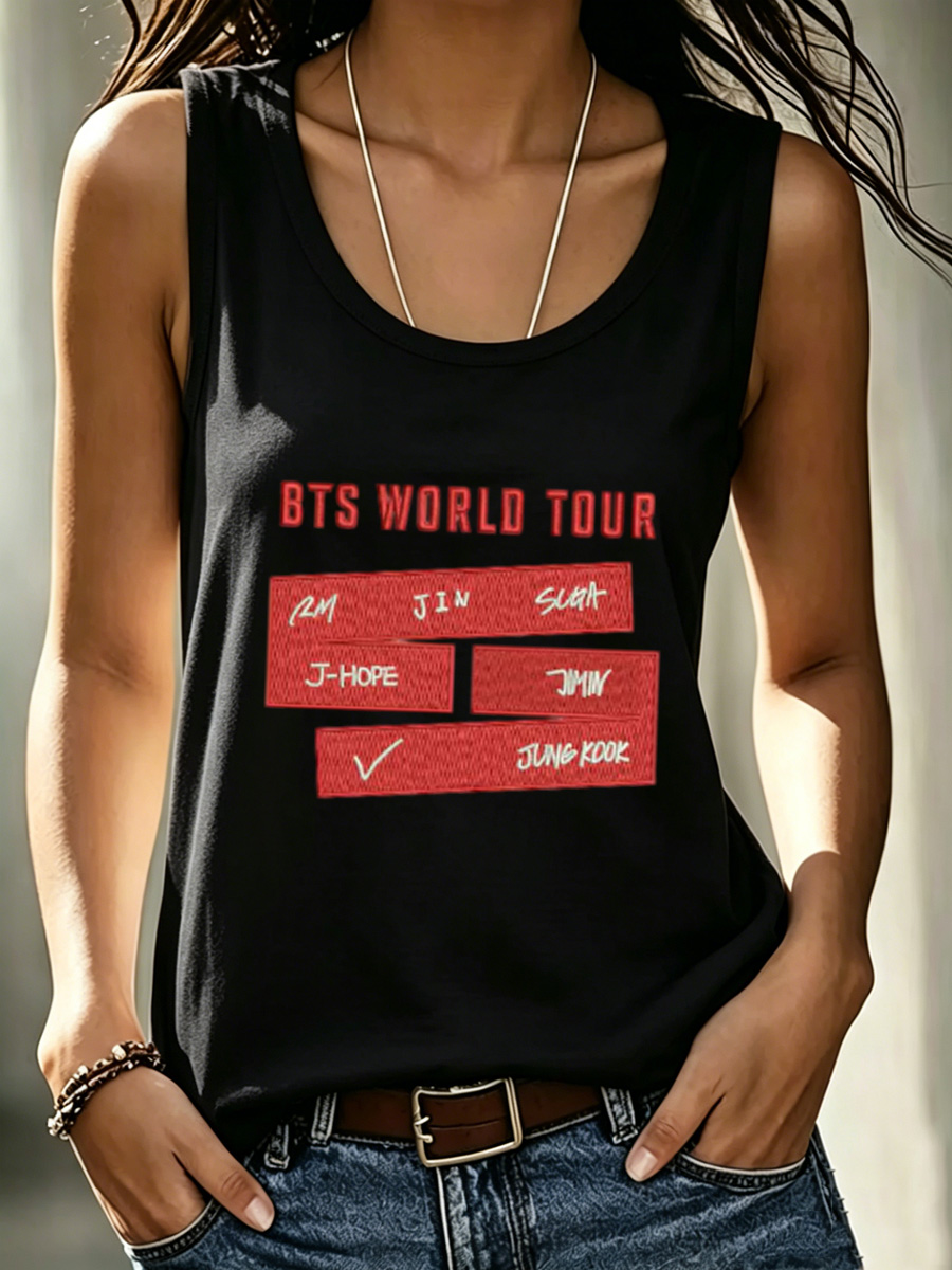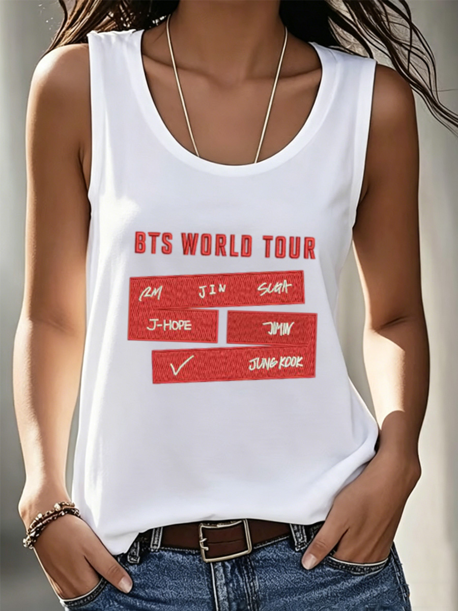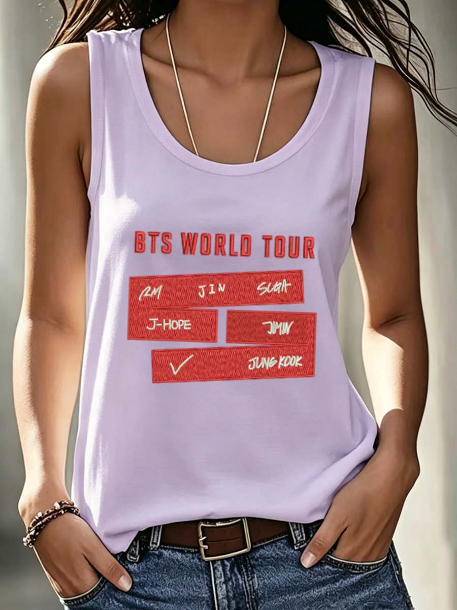 Women's Korean Style Red Name Block Graphic Tank Top